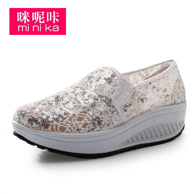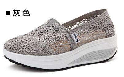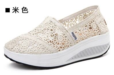 2023 Spring and Summer Lace Rocking Shoes Women's Mesh Breathable Canvas Shoes Thick Sole Hollow out Shoes Casual Old Beijing Cloth Shoes