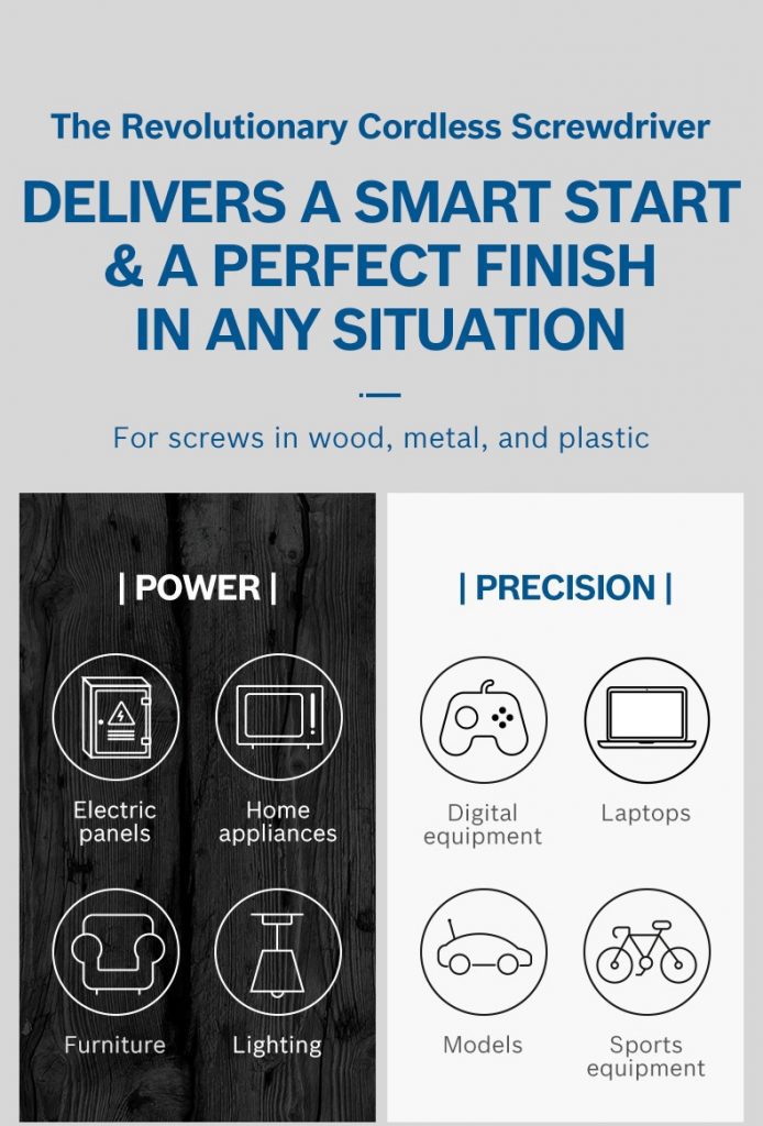 - Intuitive operation style – Just push to drive screws (Push & Go)