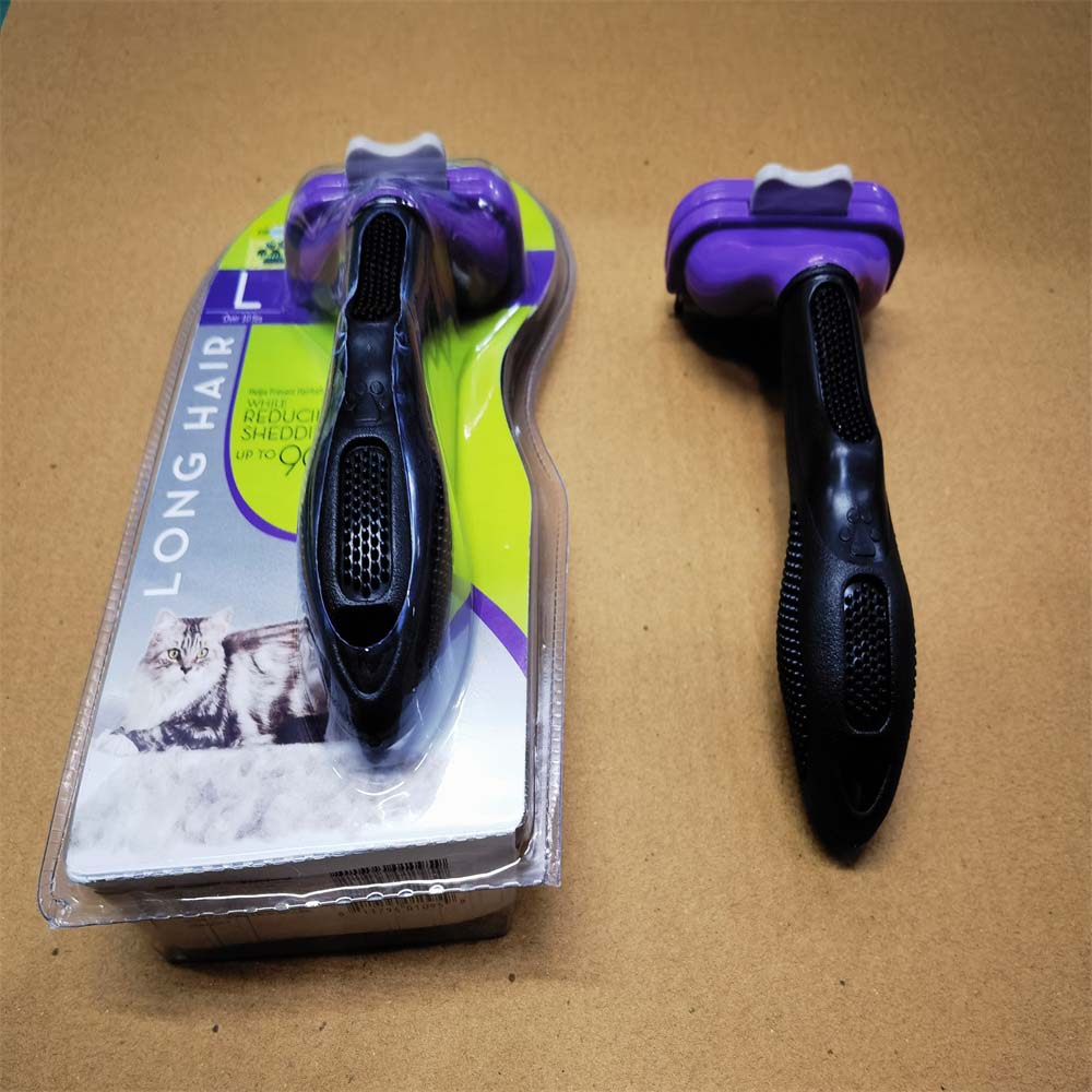 Stainless steel deShedding edge reaches through topcoat to safely and easily remove loose hair and undercoat