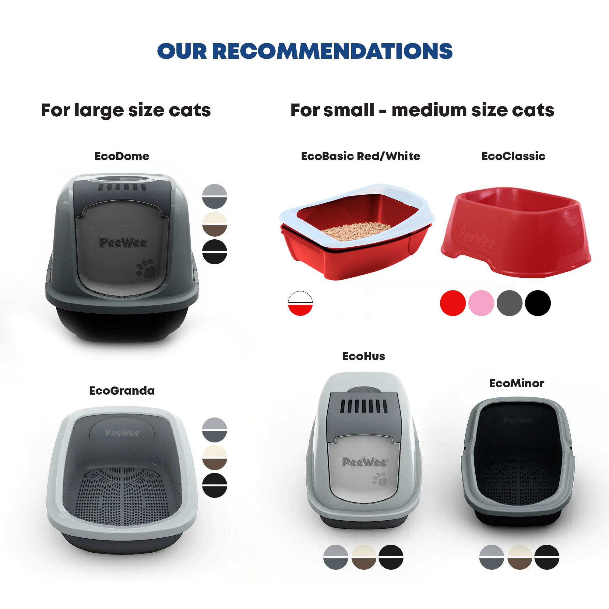PeeWee wood pellets are safe for cats and people alike. The wood shavings are compressed into pellets in a unique process without the use of glue or any chemical additives. That makes PeeWee pellets 100% natural and 100% biodegradable. In addition, the pellets are impervious to mould and frost.