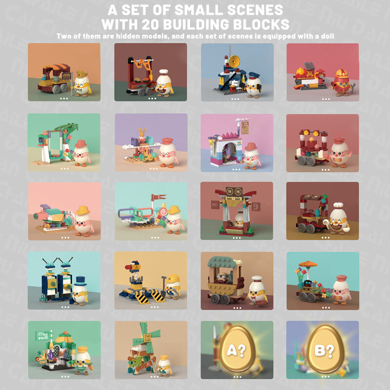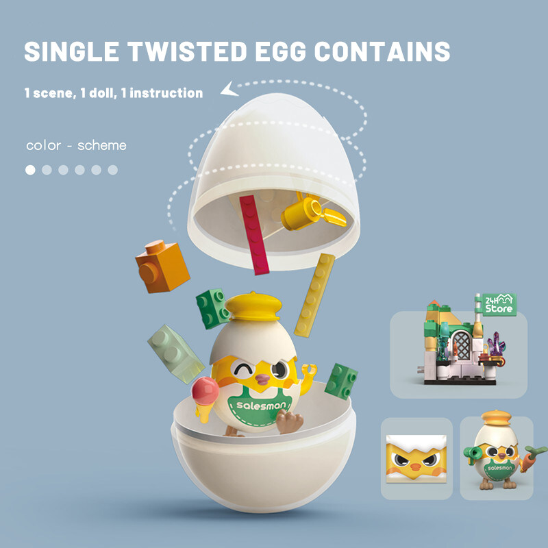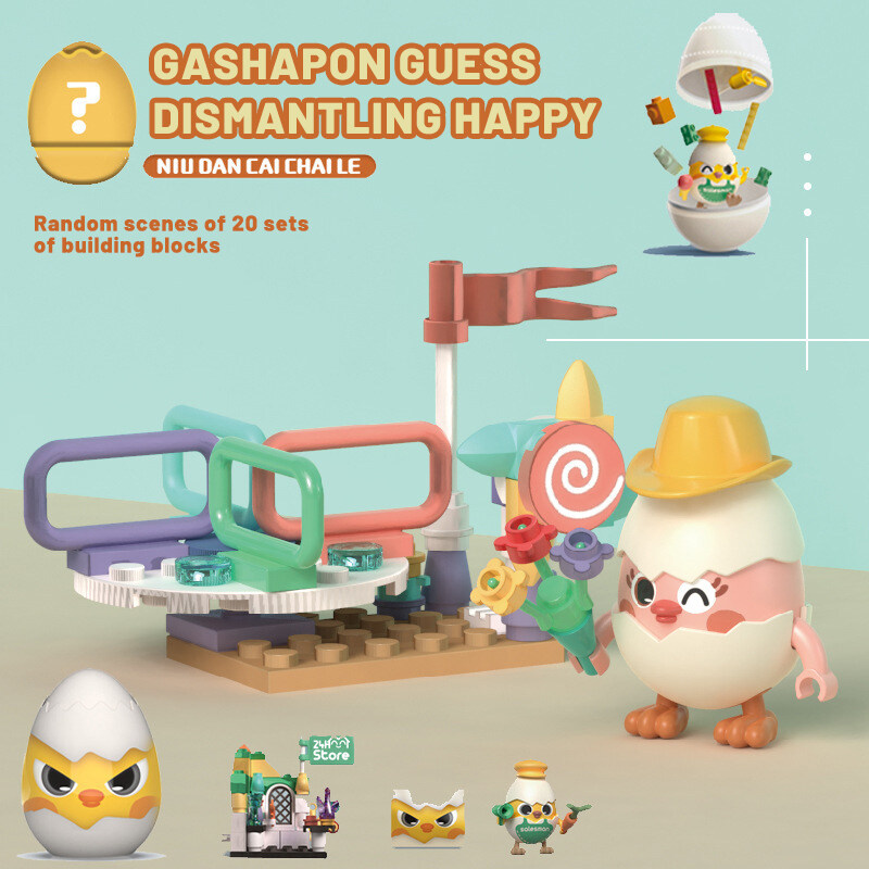 HYG Toy Blind Box 1PCS Chick Assembled Building Blocks Cartoon Doll Blind Box Gashapon Assembled Building Blocks Doll Blind Box National Tide Scene Gacha Egg Dismantling Music Chicken Warrior