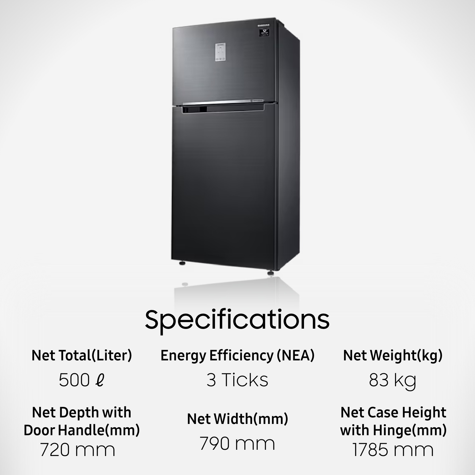 Samsung RT50K6257B1/SS, Top Mount Freezer Refrigerator, 500L, 3 Ticks