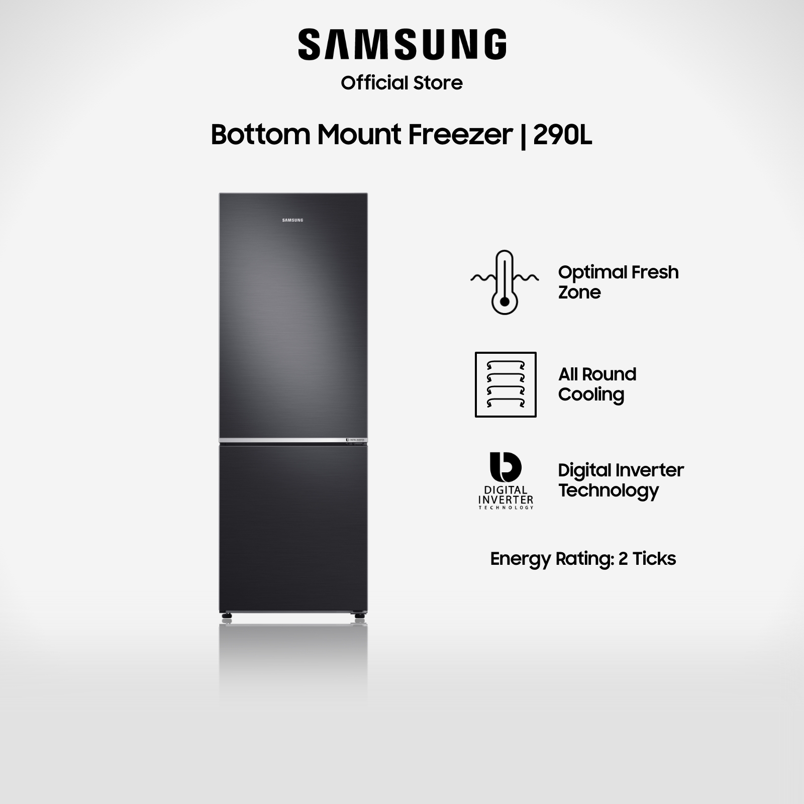 Samsung RB30N4050B1/SS, Bottom Mount Freezer Refrigerator, 290L, 2 Ticks [Online Exclusive]