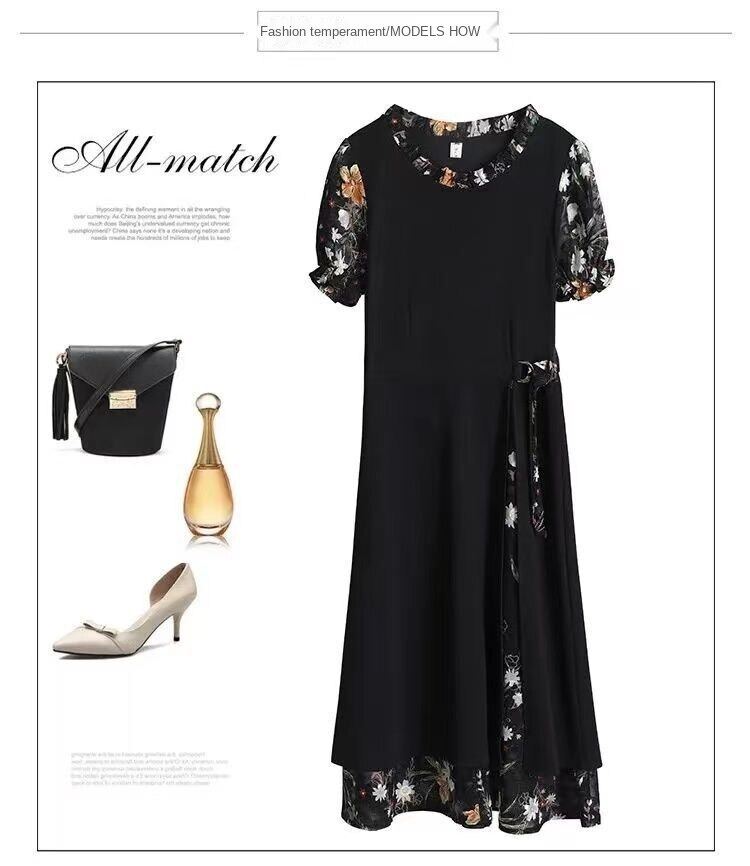 Chiffon Stitching Dress Women's Summer Dress New Popular Plus Size Women's Fat Mm Slim Slim Temperament Skirt