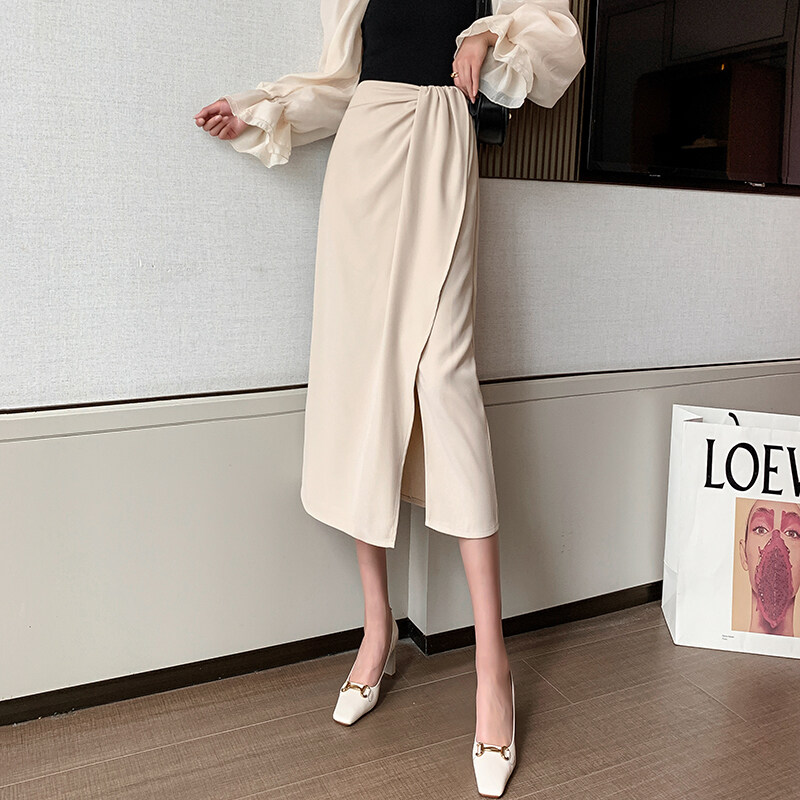 YIGE Korean fashion style irregular mid-length skirt split ends hip-lifting A-line skirt