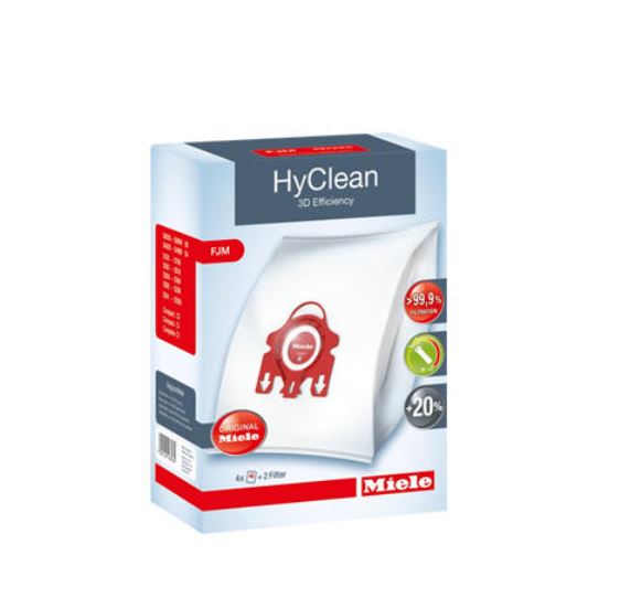 Product Name : Miele HyClean 3D Cleaner Dust Bag FJM (S300,S500,S700,S4000,S6000,C2 Series), 4 HyClean bags and 2 cut-to-size filter