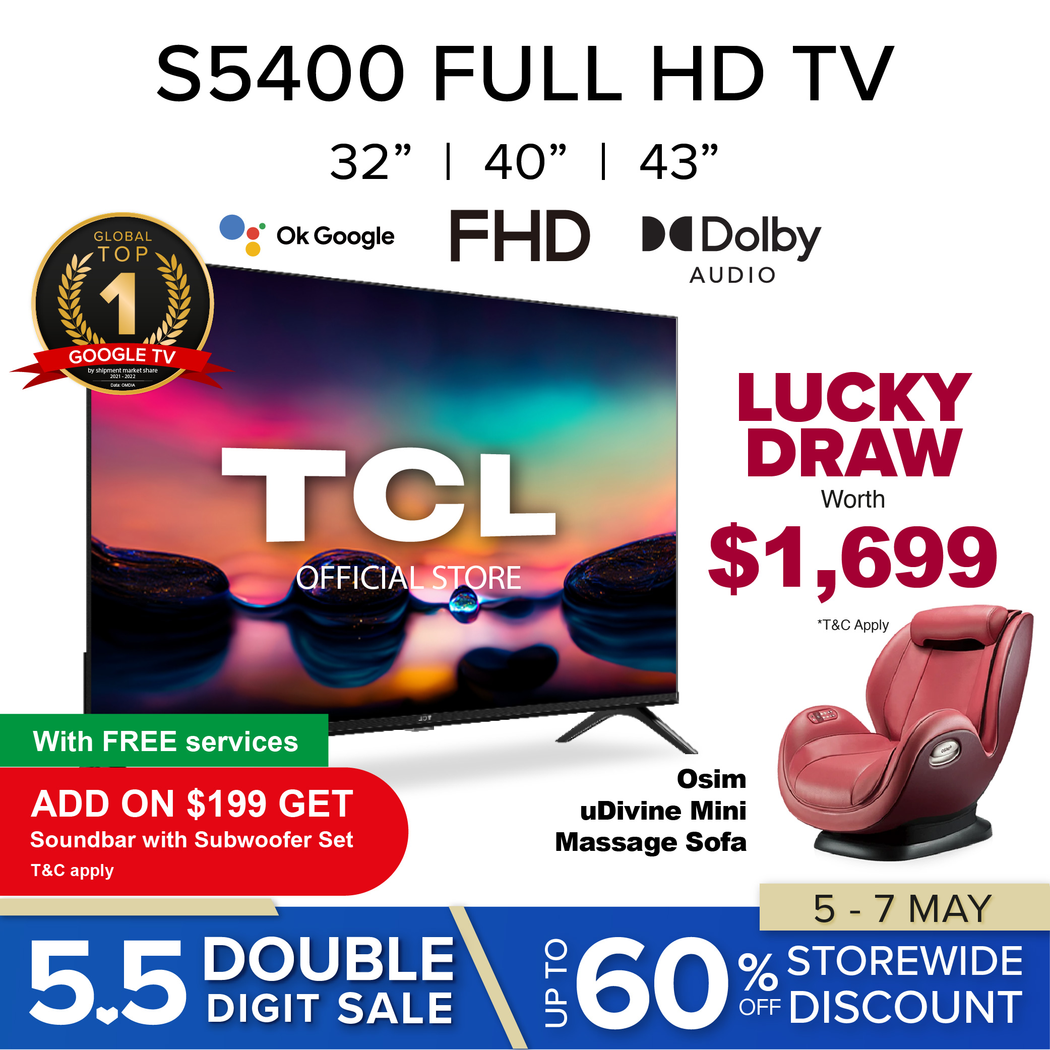 Add on $199 get Sound-bar with Subwoofer Set