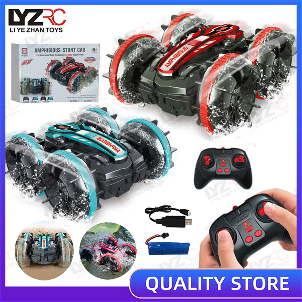 LYZRC RC Car 2.4G Amphibious Remote Control Stunt Car Double-sided Tumbling Driving Vehicle Children's Electric Toys Car for Kids Boys Girls