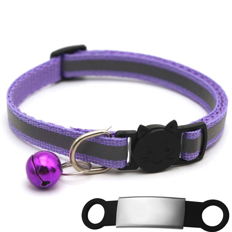 Free Custom ID Name Tag Cat Collar Bell Necklace Safety Reflective Nylon Kitten Cat Collar Personalized Engraved Safte Buckle