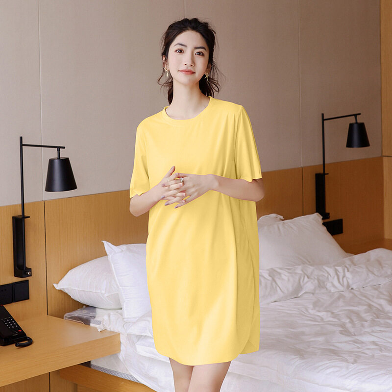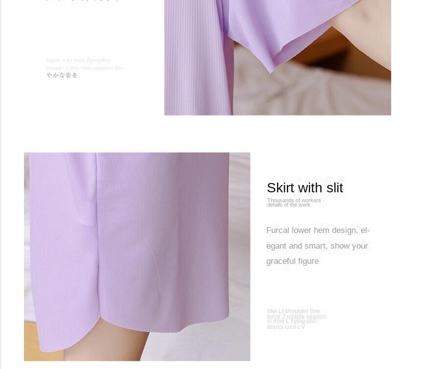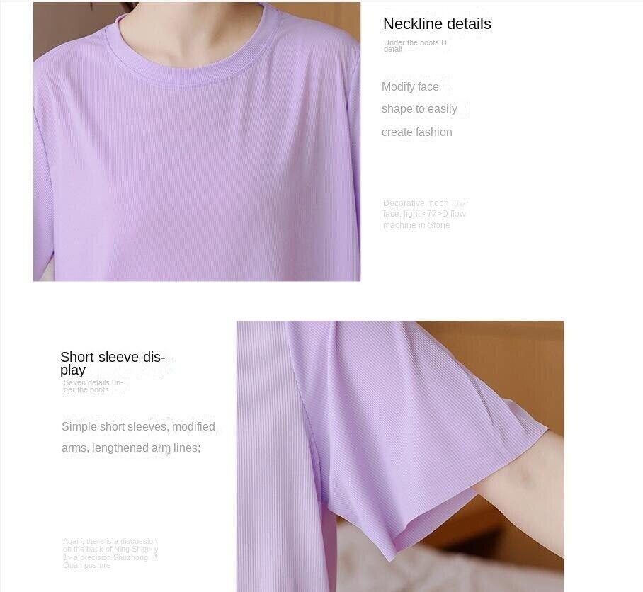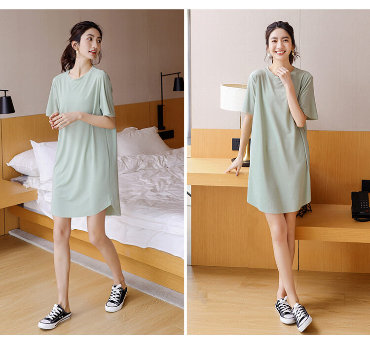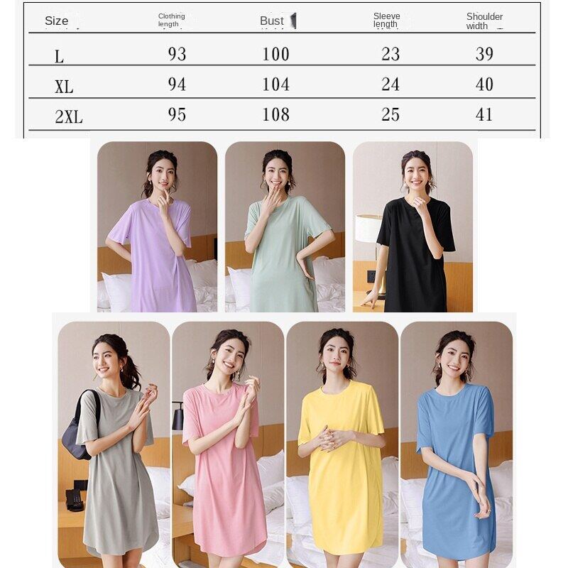 2022 New Summer Ice Silk Midi Dress Women Short Sleeve Round Neck Thin T-shirt Dress Ladies Loose Dresses Women's Causal Home Wear Plus Size Top Japanese
