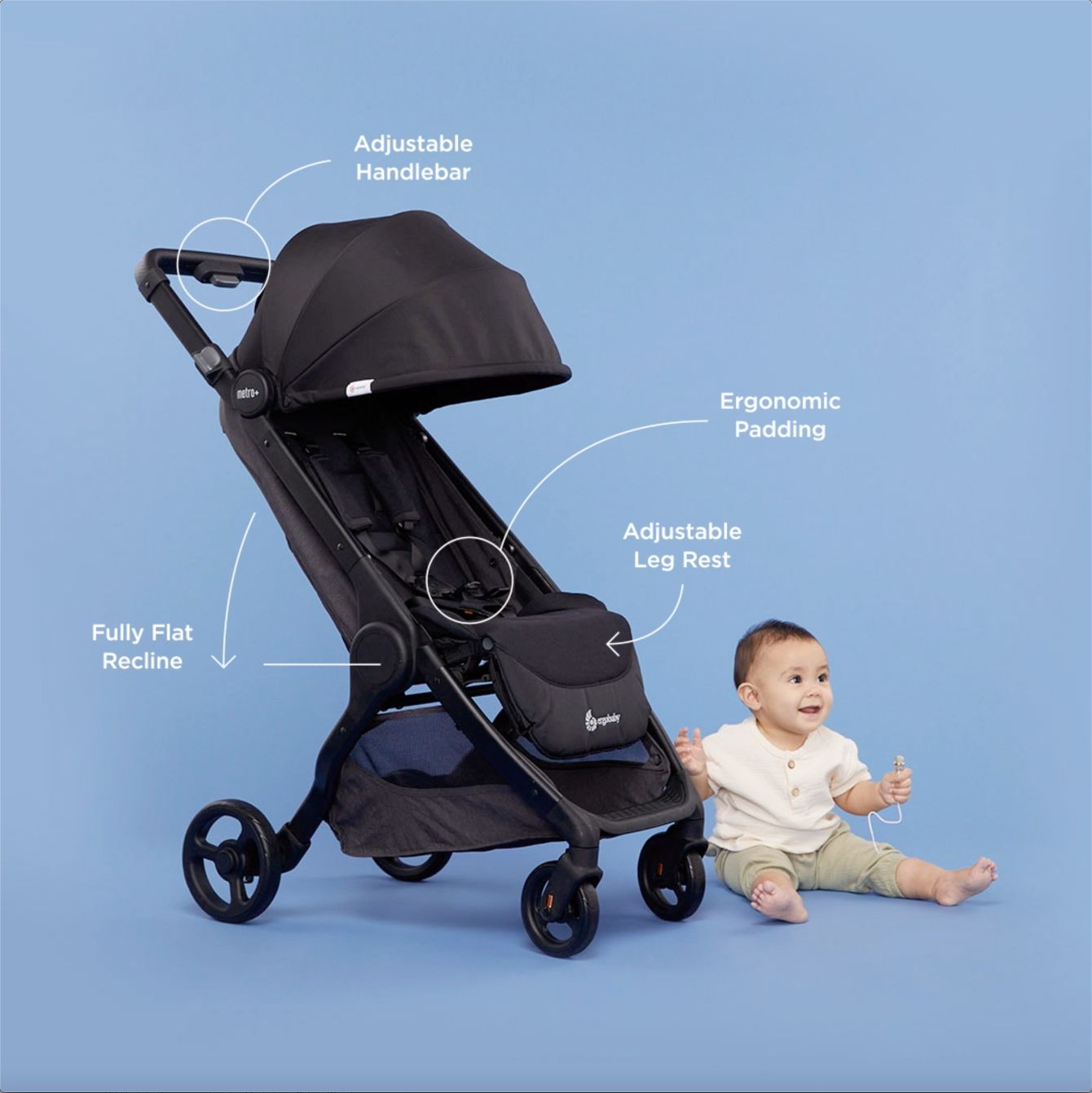 Jeep PowerGlyde Plus Stroller by Delta Children - Lightweight Travel Stroller with Smoothest Ride, Aluminum Frame, 4-Position Recline, Extra Large Storage Basket, Black