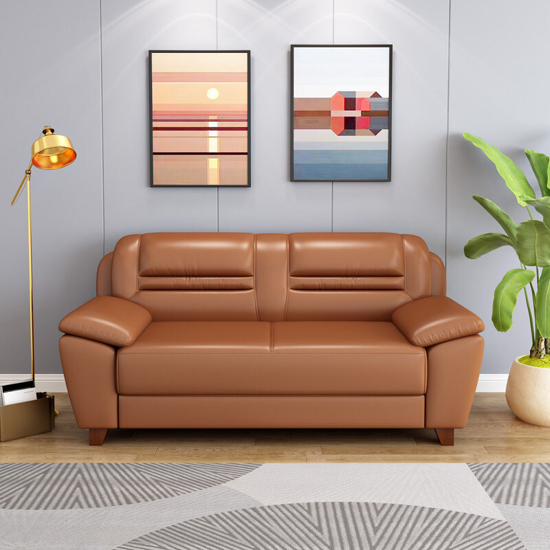 Leather Sofa Small Apartment Internet Celebrity Three-Seat Living Room Combination Modern Minimalist Office Double Leather Small Sofa