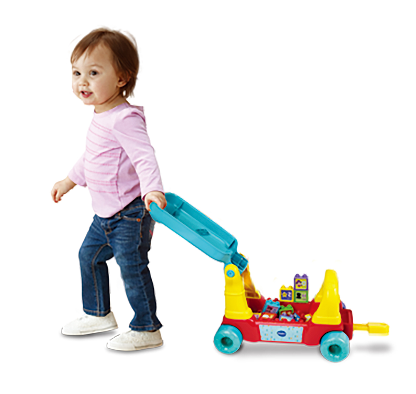 4-in-1 grow with me alphabet train includes modes for sit-down play, walker, pull-along wagon and ride on. Teaches objects, animals, phonics, colours, numbers and much more.