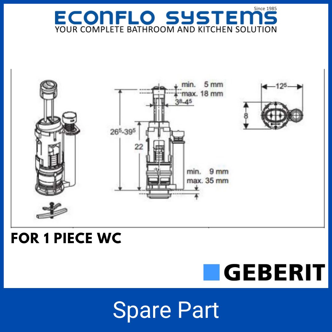 Geberit 222.277.21.1 Type 250S dual flush valve for one piece, metal hook