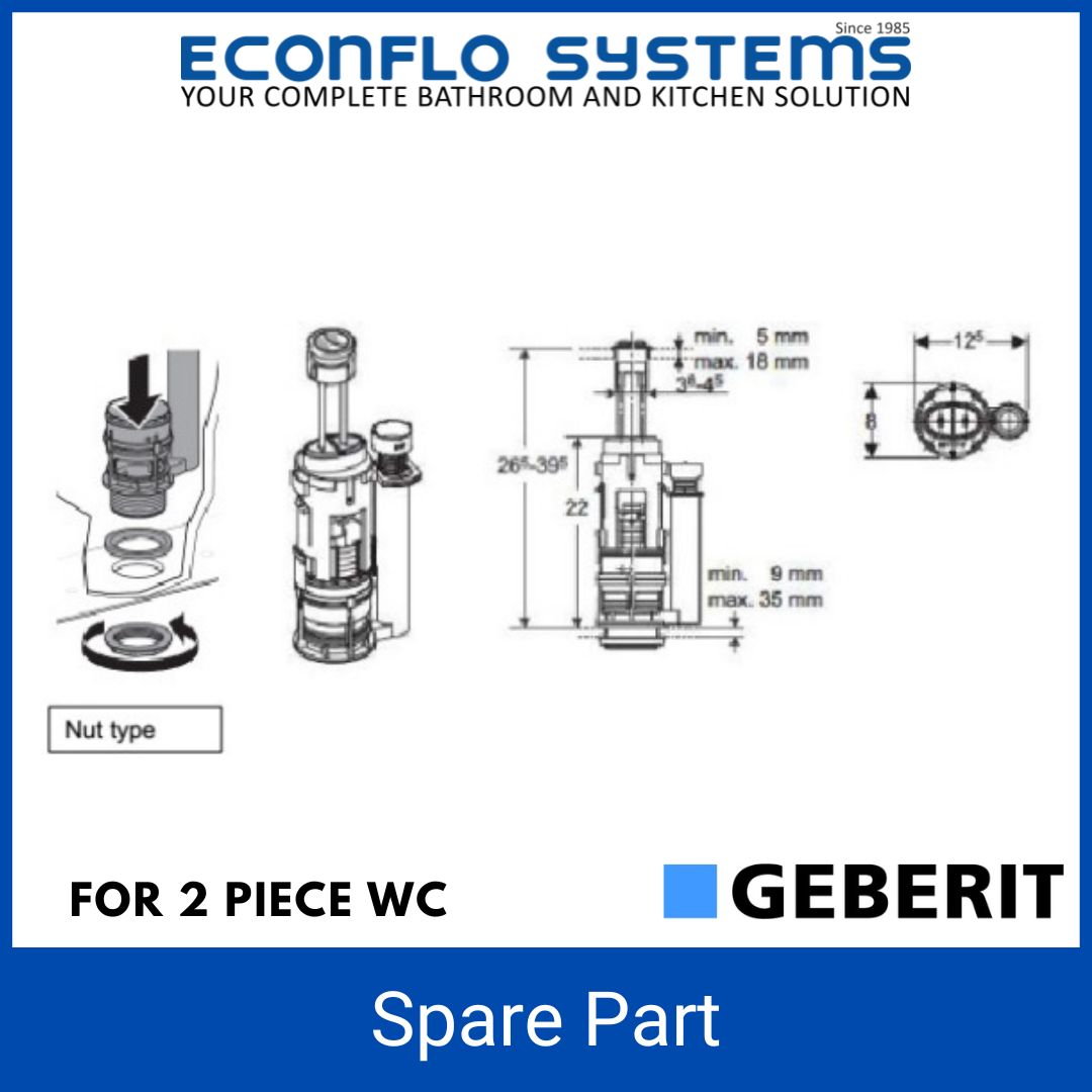 Geberit 222.278.21.1 Type 250S dual flush valve for two piece, metal hook