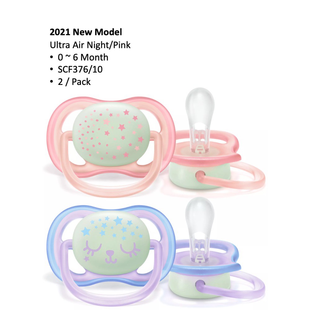 Soothe your baby with a pacifier that lets skin breathe and is easy to find at night. The Philips Avent ultra air night has extra large holes to keep skin dry, and a glow-in-the-dark button so you can see it while the lights are out.Lets skin breathe