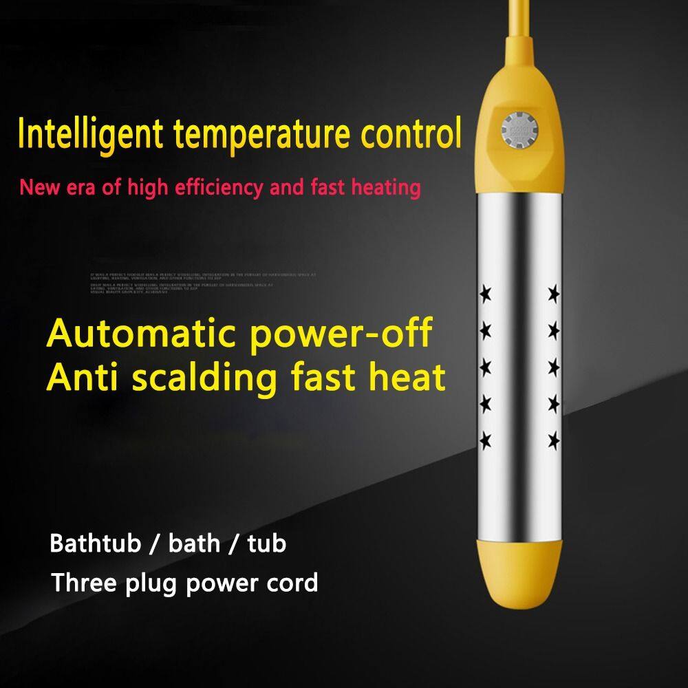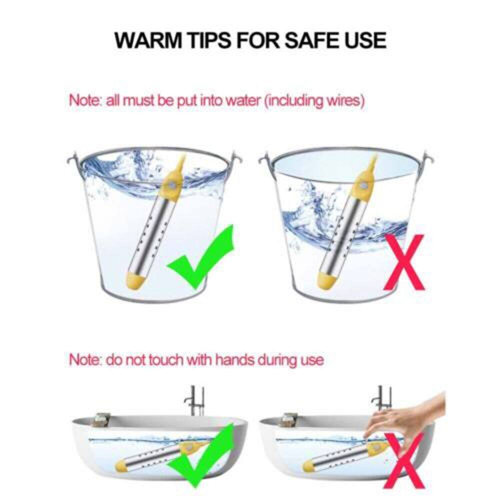 There is awaterproof indicator on the back of the heater. When the red light is on, itmeans that the work has started.The bottom is with an insulator while the smooth stainless steel guard aims to avoid scalding injures, freely to use.