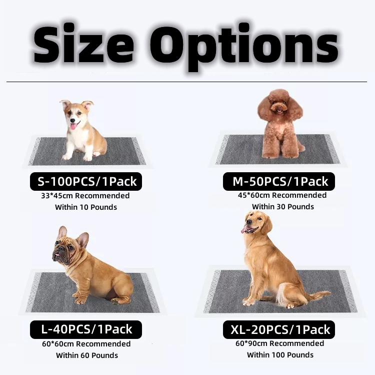 【MULTIPLE SIZE OPTIONS】 Charcoal pee pads for dogs size each count are engineered to be thicker and stronger than standard puppy pee pads. The size is great for puppies, dogs, elderly canines, kittens, cats and other pets, also for your indoor or outdoor use.