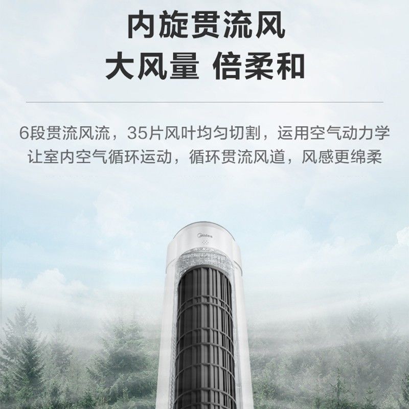 Midea Electric Fan Blade-Free Floor Tower Fan Household Timing Table Vertical Sound Light Dormitory Shaking Head Tower Electric Fan