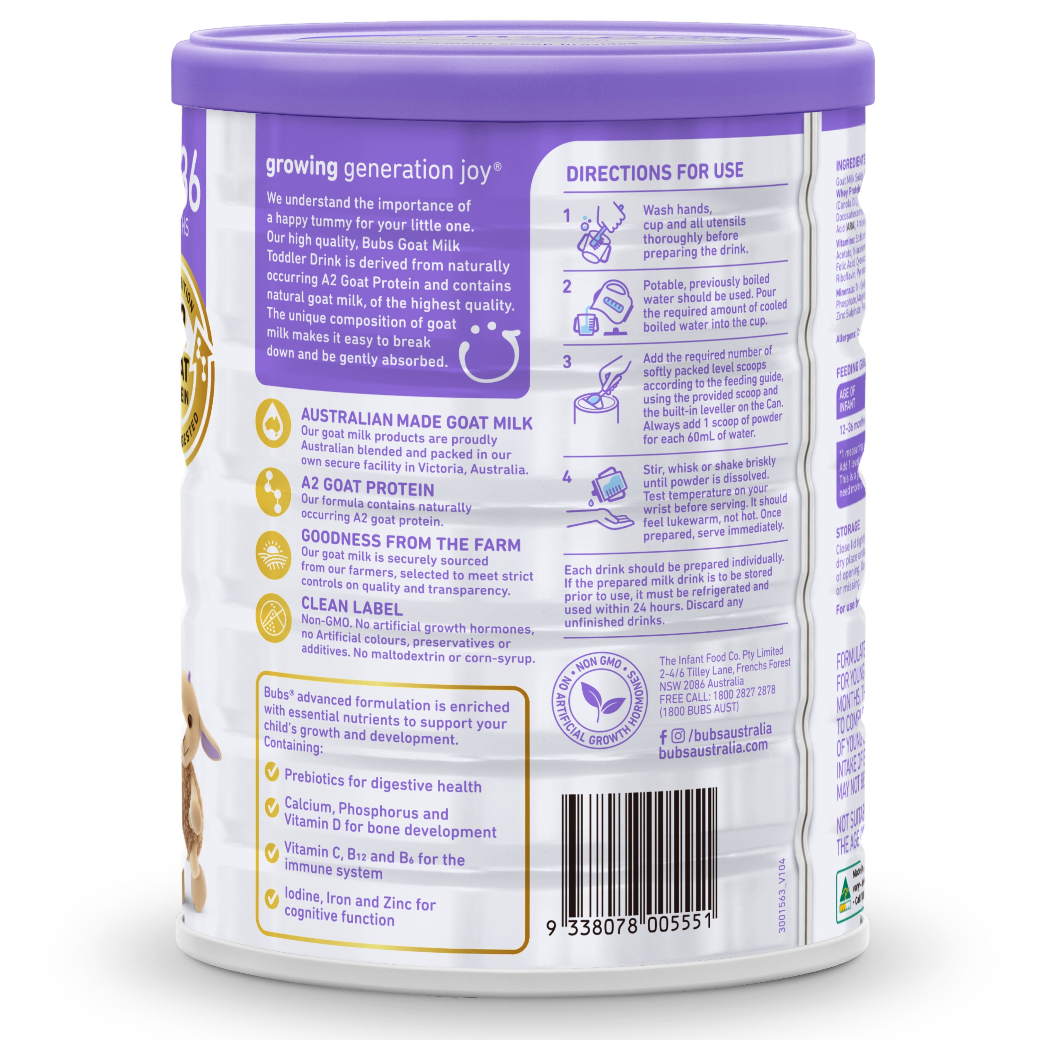 Bubs Organic Australian Goat Milk Toddler Drink Stage 3 800G Baby Formula (TinyWings.sg)