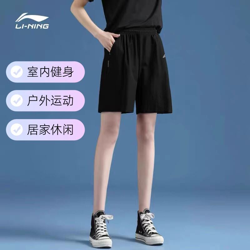 Li Ning Shorts Women's Sports Quick-Drying 2024 Summer New Arrival Breathable Ice Silk Loose Plus Size Brand Fifth Pants for Women
