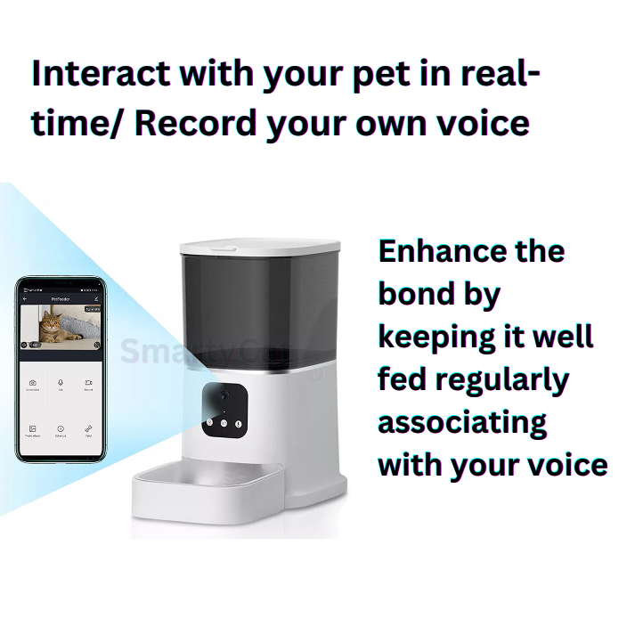 Smarty Cat Automatic Cat Feeder is a revolutionary solution that combines convenience, surveillance, and freshness for cat owners. With its programmable timer, you can easily set feeding schedules tailored to your cat’s needs, ensuring they are fed on time, every time.