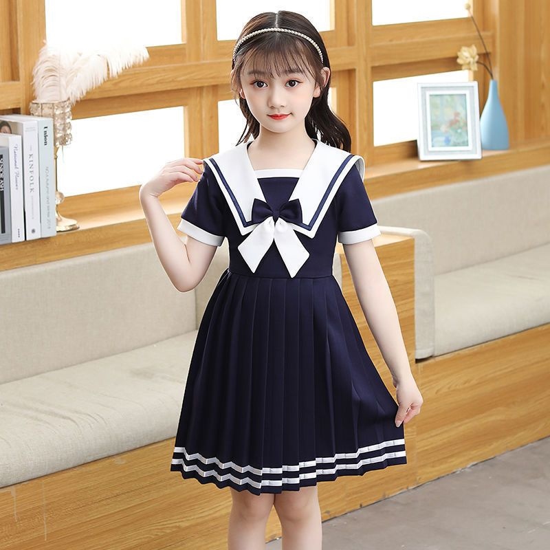 ♀☄ Angugu kids navy neck dress girls short sleeve dress summer Lolita princess dress JK college style little girl skirt 2 to 12 years old teen girl