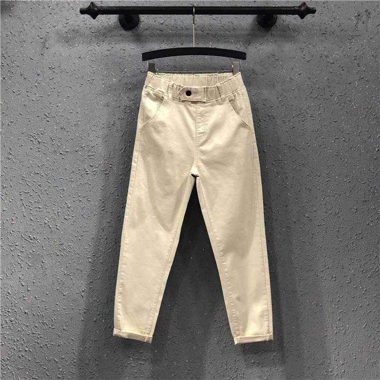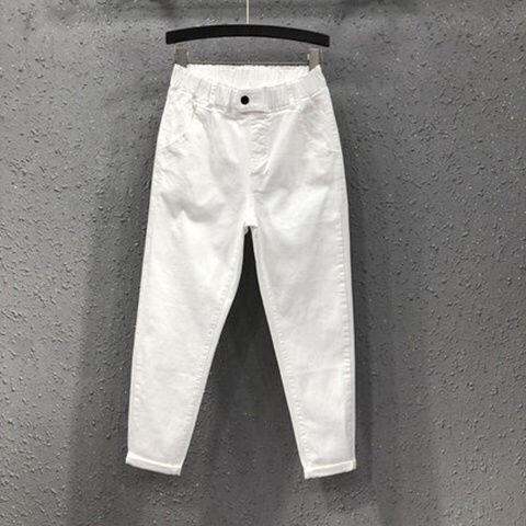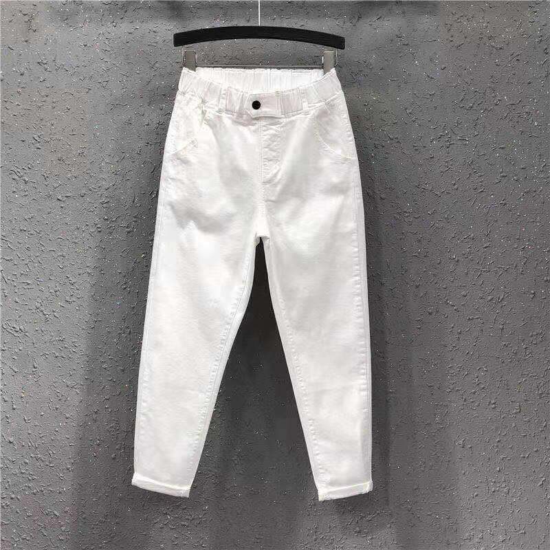 202411 New Fc202 Spring 4 Autumn High White Elastic Waist Denim Women's K-style Loose Thin Cropped Casual Pants