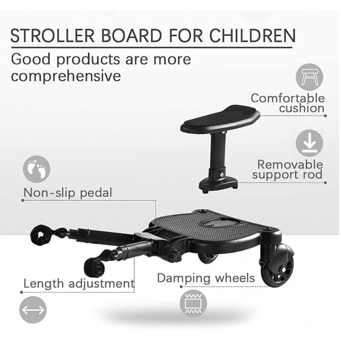 baby Stroller standing Board extension 2-in-1 Buggy Board with Detachable Seat stand board