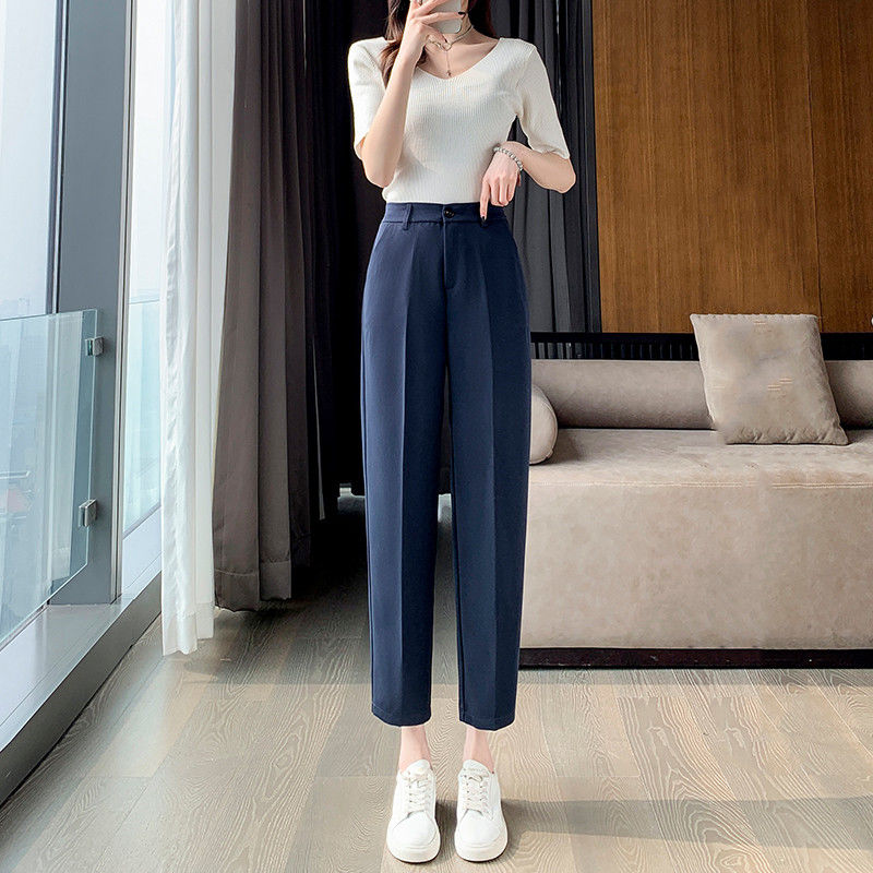 ins navy blue Suit pants for women Korean style high waist professional office fashion straight skinny pants