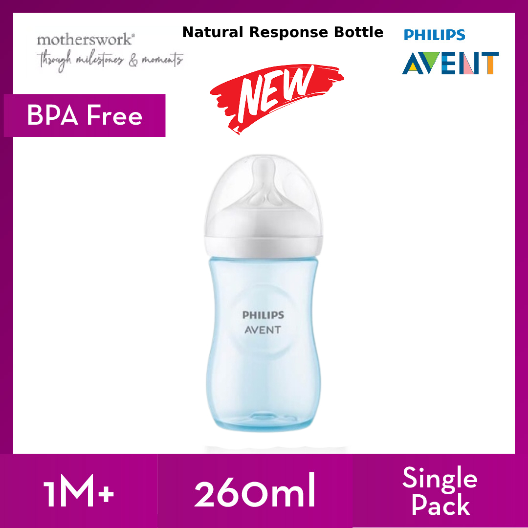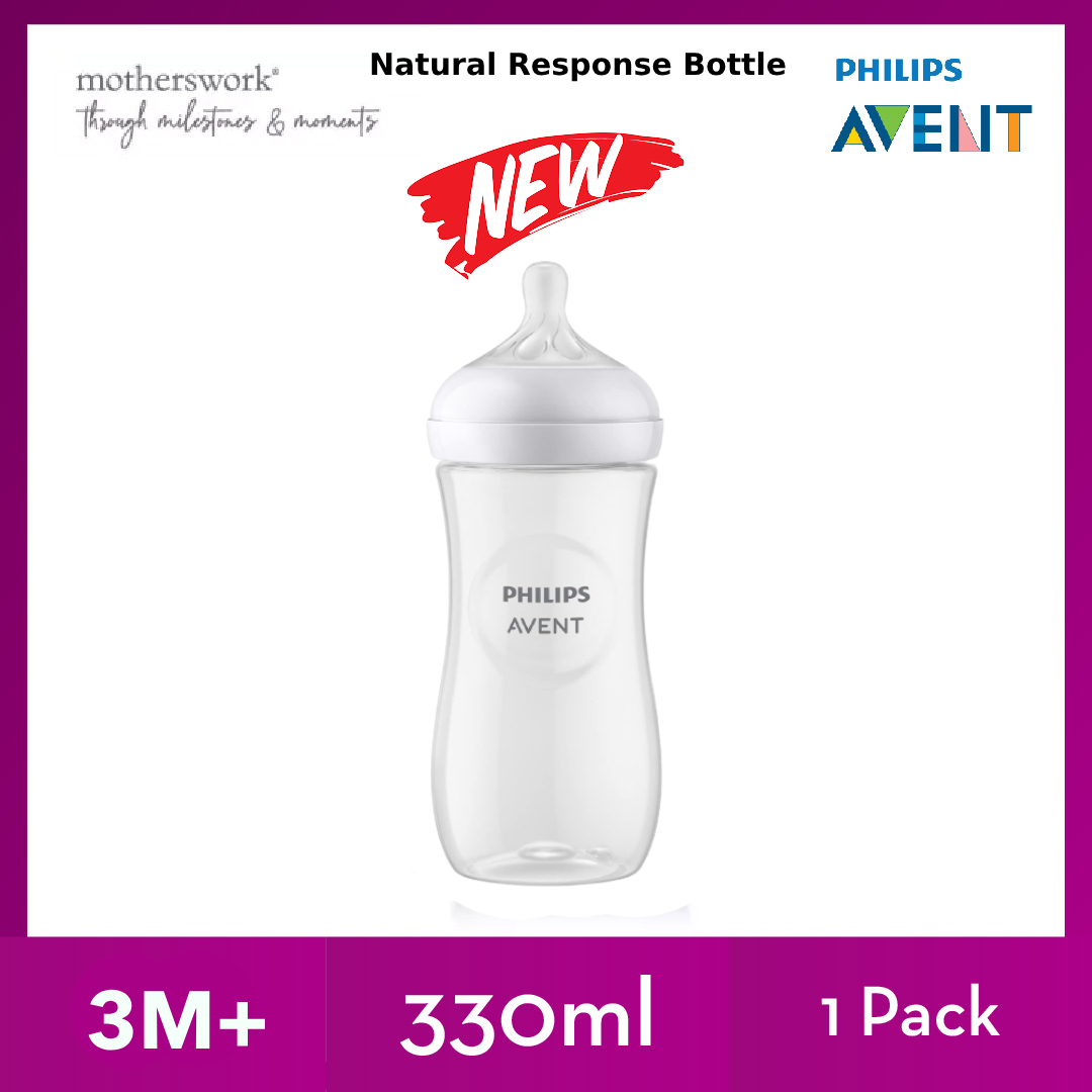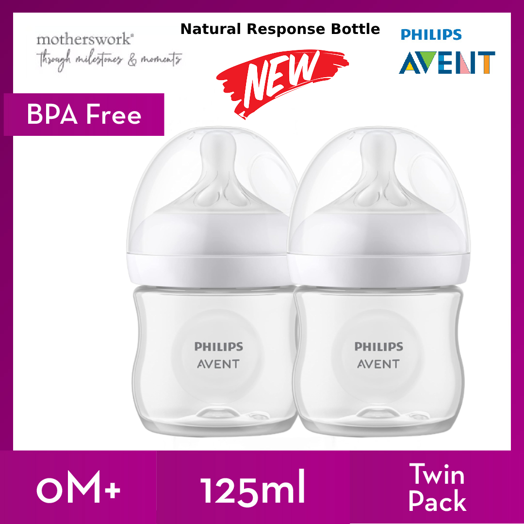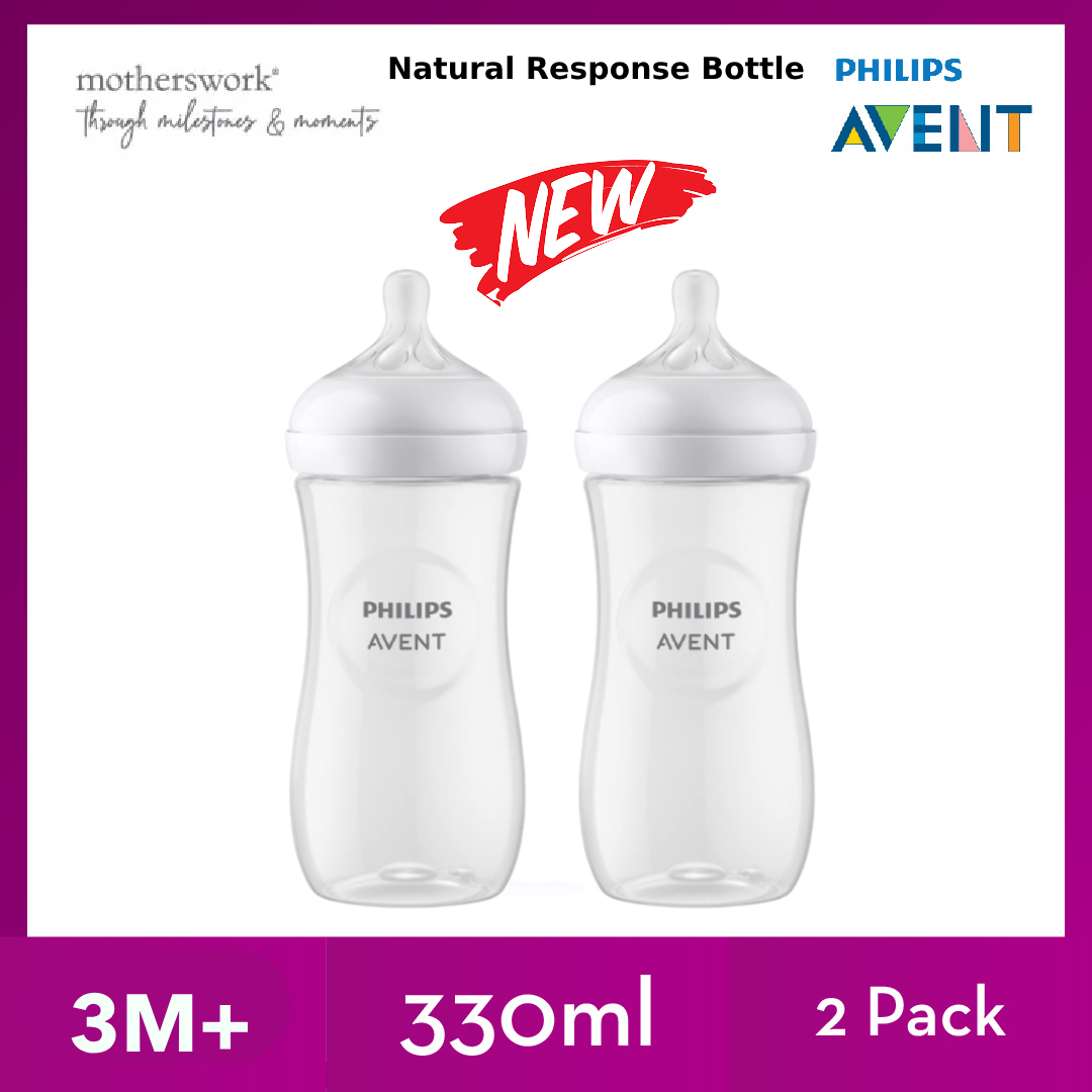 [3 Sizes] Philips Avent Baby Response Natural Bottle With Teats 125ml / 260ml / 330ml Single / Twin Pack - 0M+