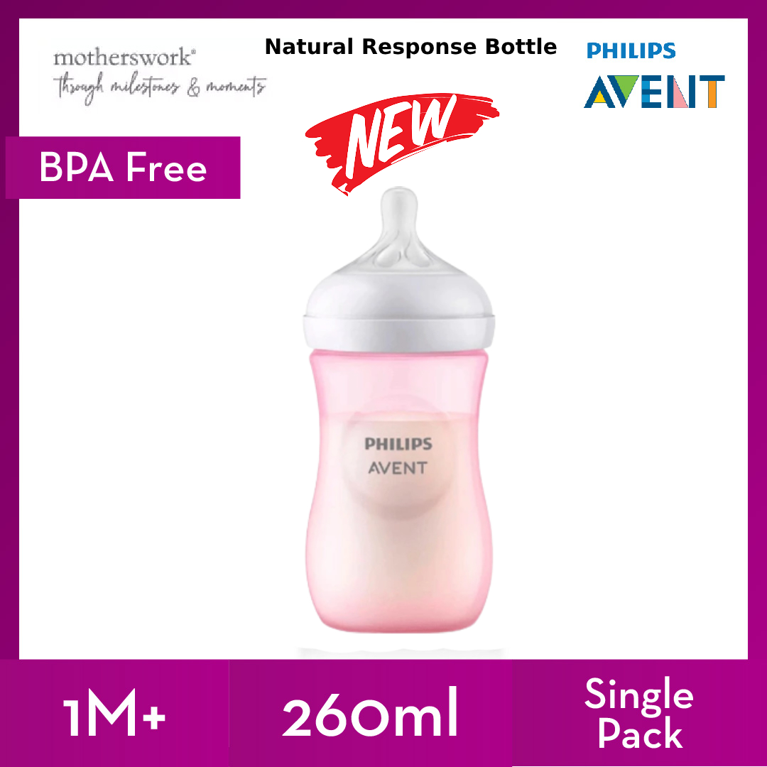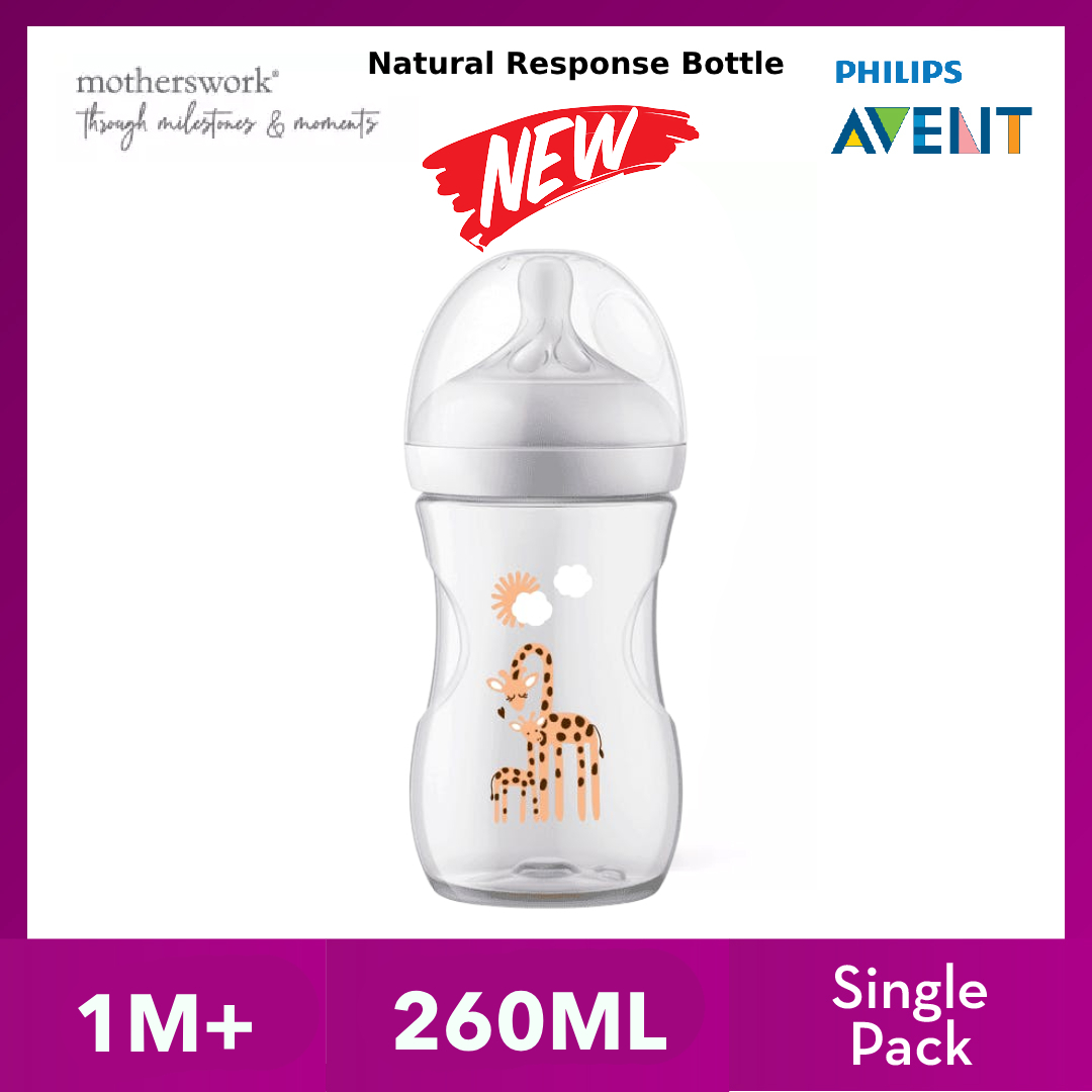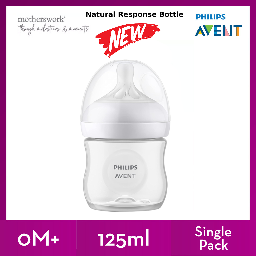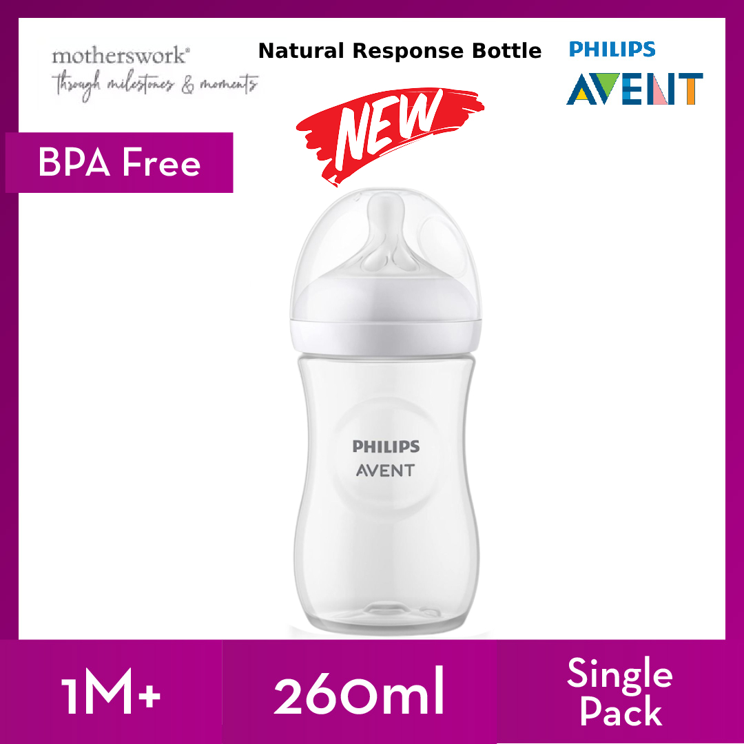[3 Sizes] Philips Avent Baby Response Natural Bottle With Teats 125ml / 260ml / 330ml Single / Twin Pack - 0M+