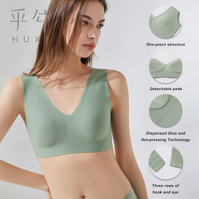 NJ HUXI Aimer Group Seamless Non-wired Bras with Removable Unlined Hidden-holed Pads Comfortable Everyday Sleep wearable Deep V Type Back Hook Short Vest Underwear Women Lingerie HX172270 1019