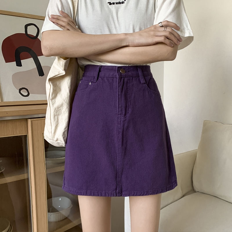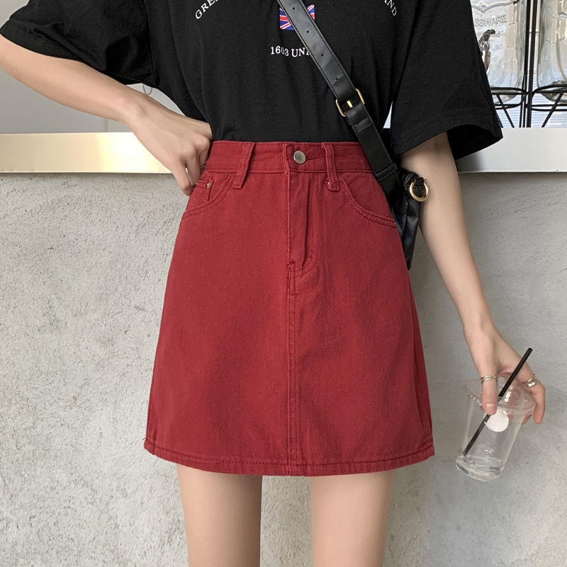 100.00kg Chubby Girl Summer K-style Women's Mid Length Long Length A- line Skirt Elastic Waist One Breasted Pocket plus Size Skirt