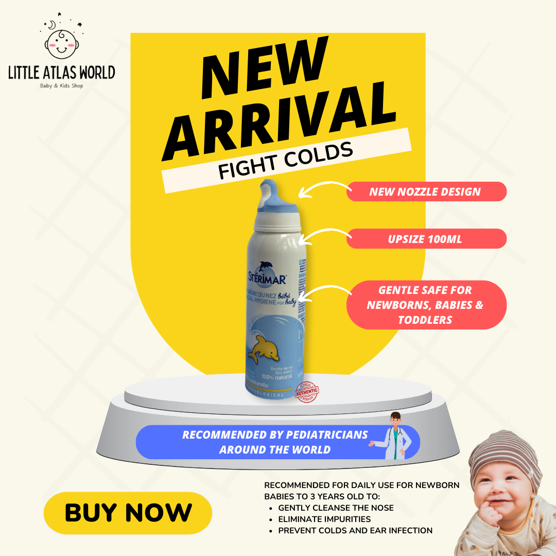 Stérimar™ Baby Hygiene Spray is a 100% natural purified sea water based nasal spray that gently cleans and clears little noses.