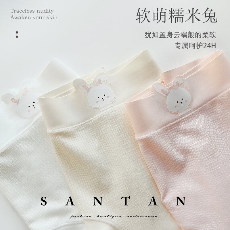 Soft Glutinous Rice Rabbit Cute Young Adult Adorable Rabbit Print Underwear Mid Waist Classic Briefs 5A Antibacterial Cotton Crotch