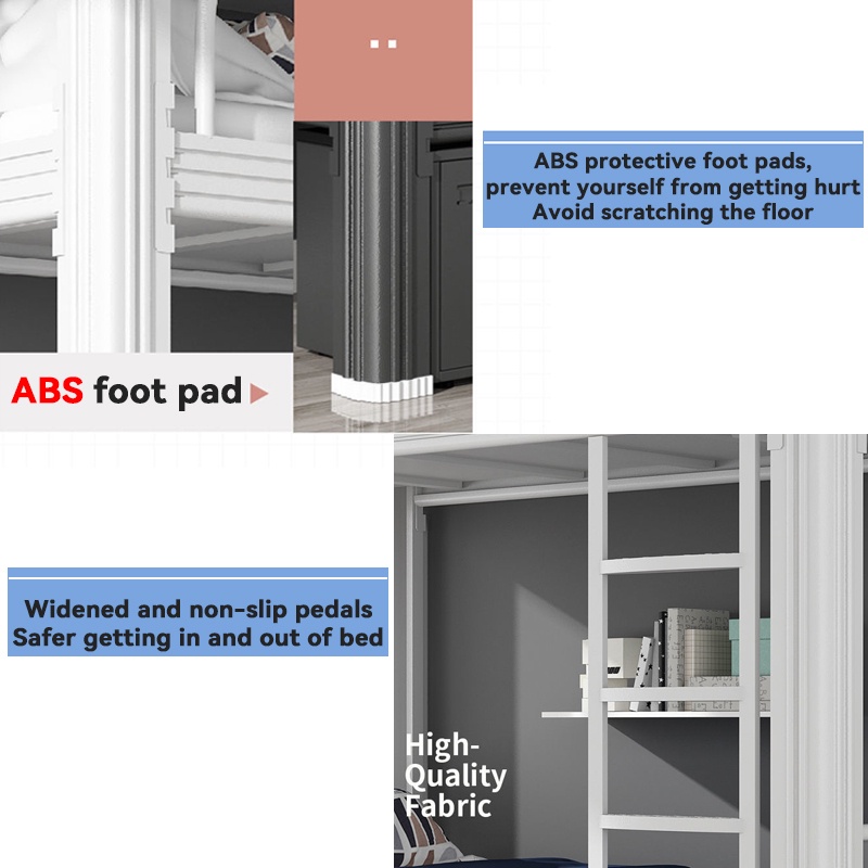 Main material: high-quality cold-rolled steel plate (tenon and mortise structure, the bed is more stable when sleeping)