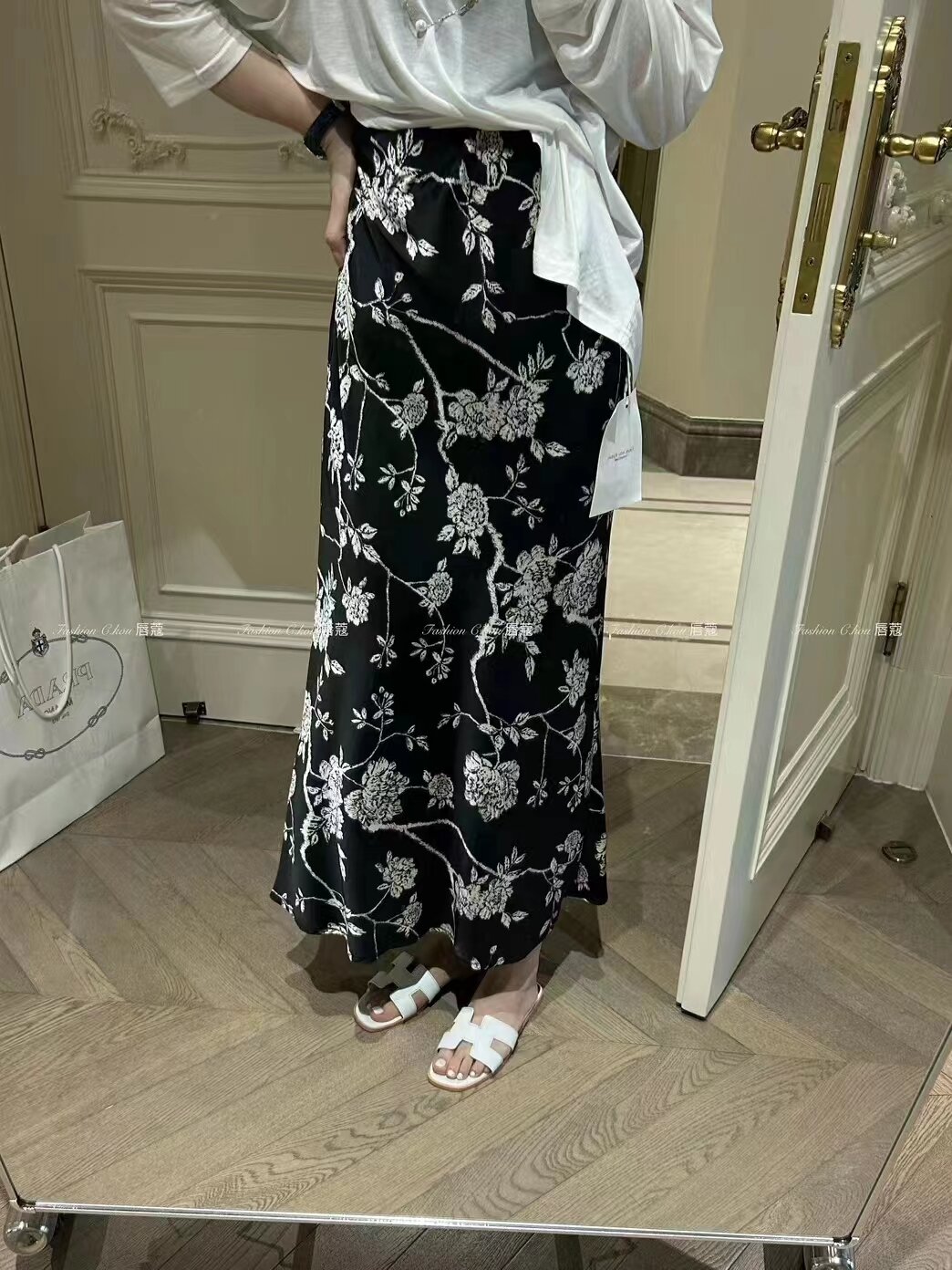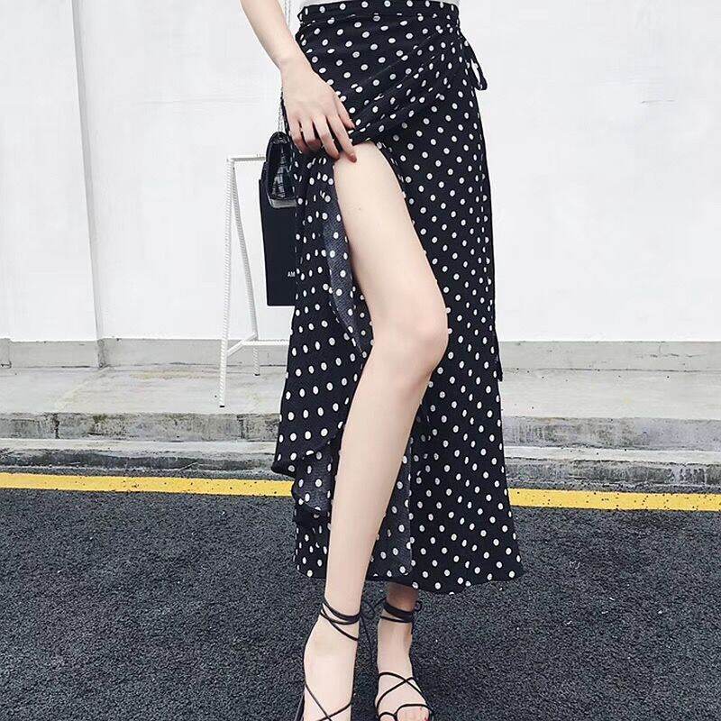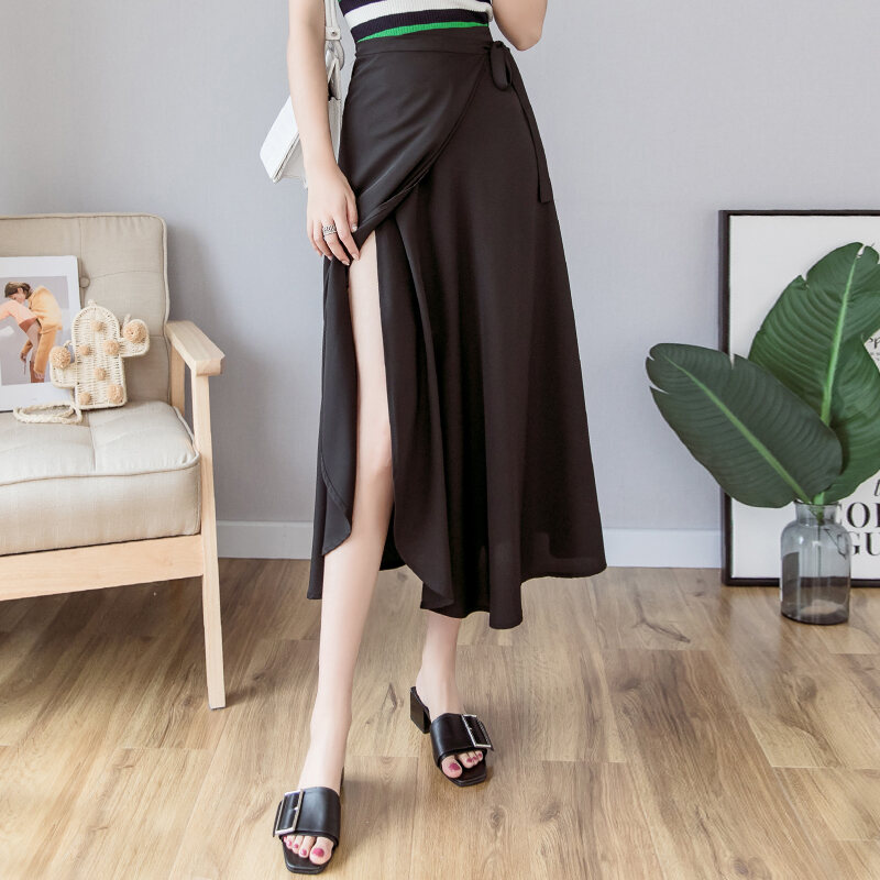 100.00kg Chubby Girl Summer K-style Women's Mid Length Long Length A- line Skirt Elastic Waist One Breasted Pocket plus Size Skirt