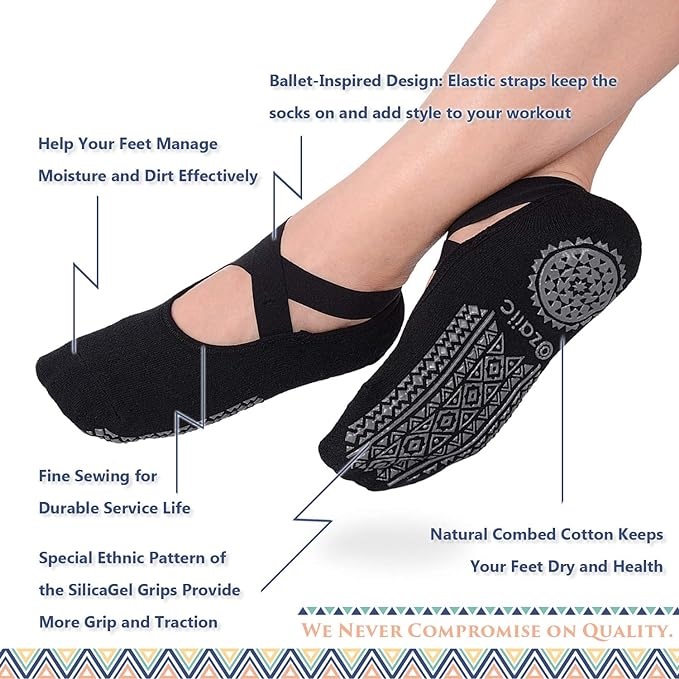 - INCREASE BALANCE AND STABILITY - Our barre socks are also great for when you do yoga on slippery surfaces like tile floors or even carpets. Traditional athletic socks can be very slippery on wood floors, gym floors, and Pilates equipment. Designed with your safety in mind, non-slip socks provide more grips and traction on slippery surfaces.