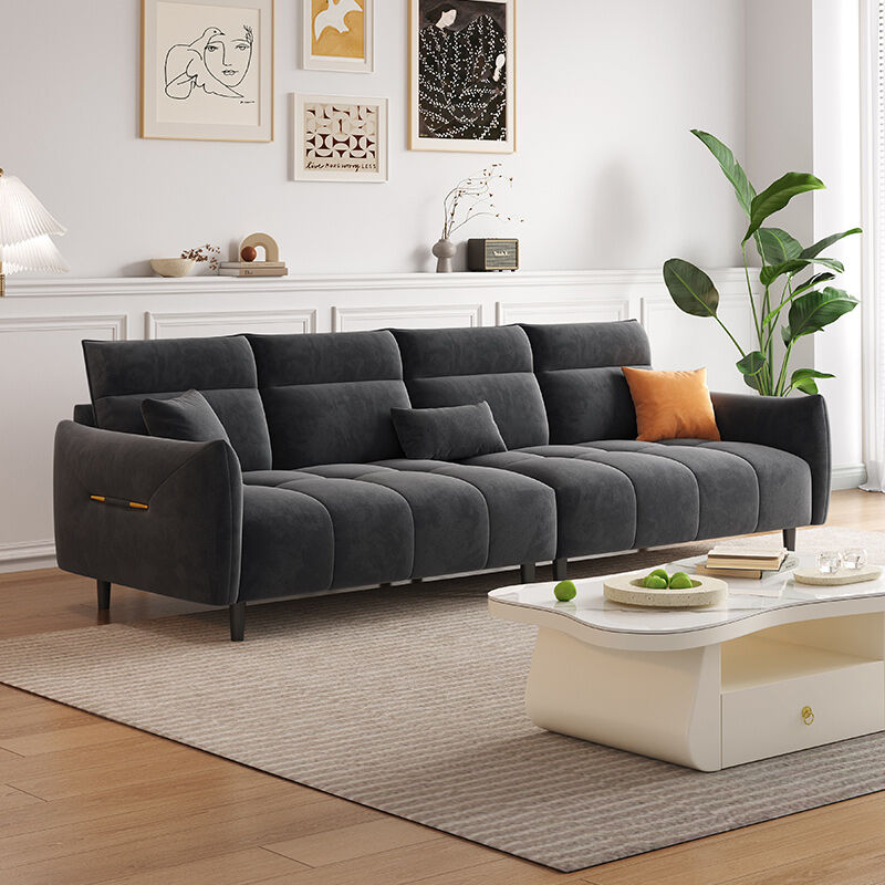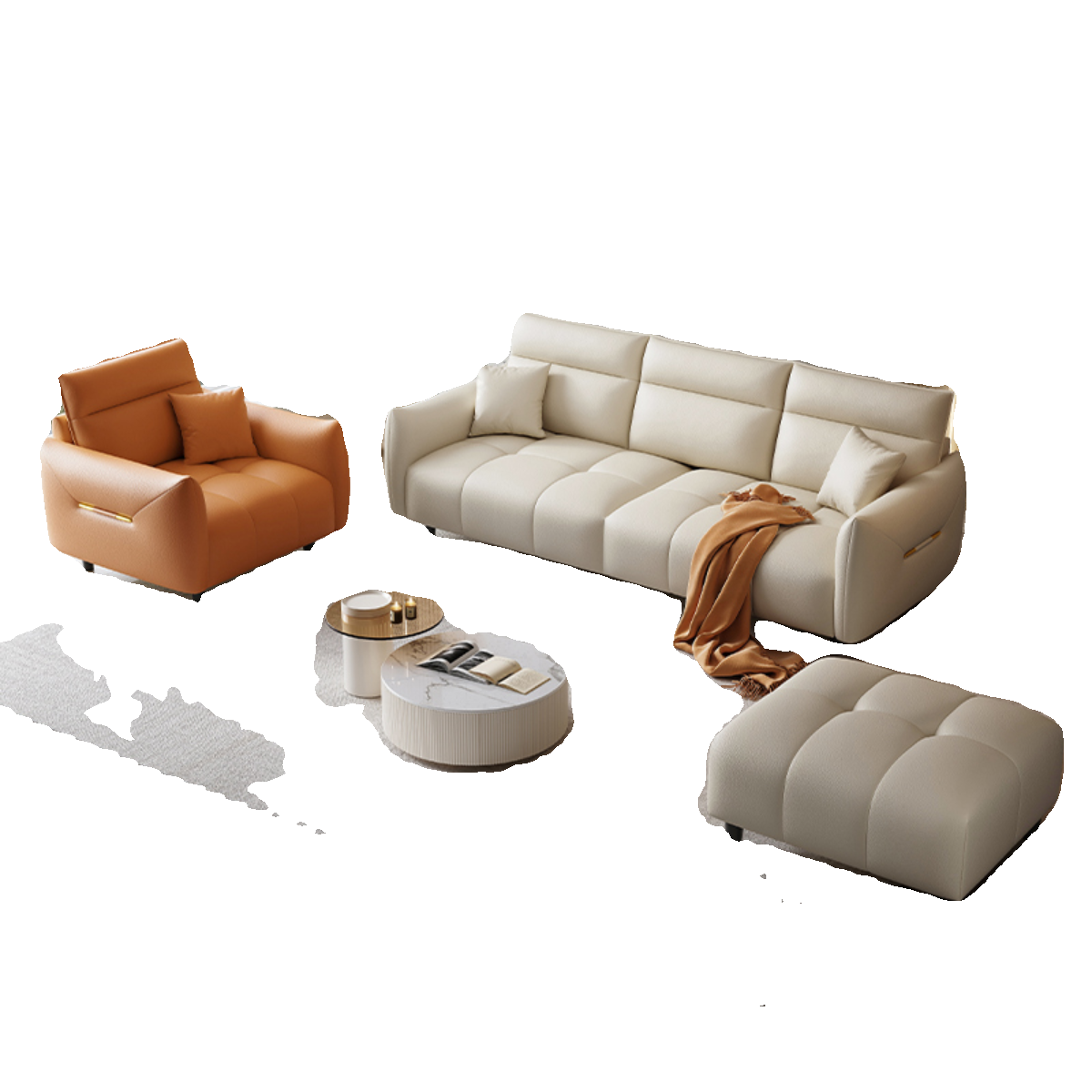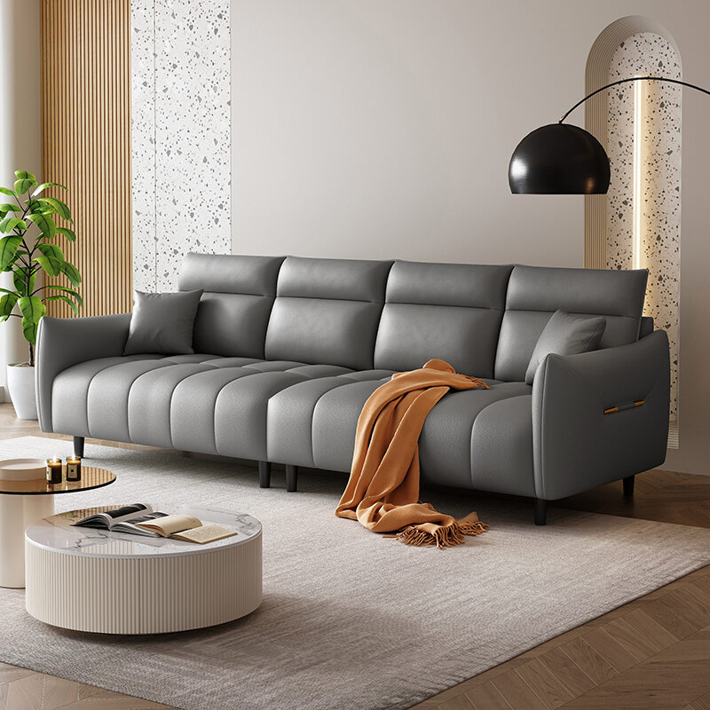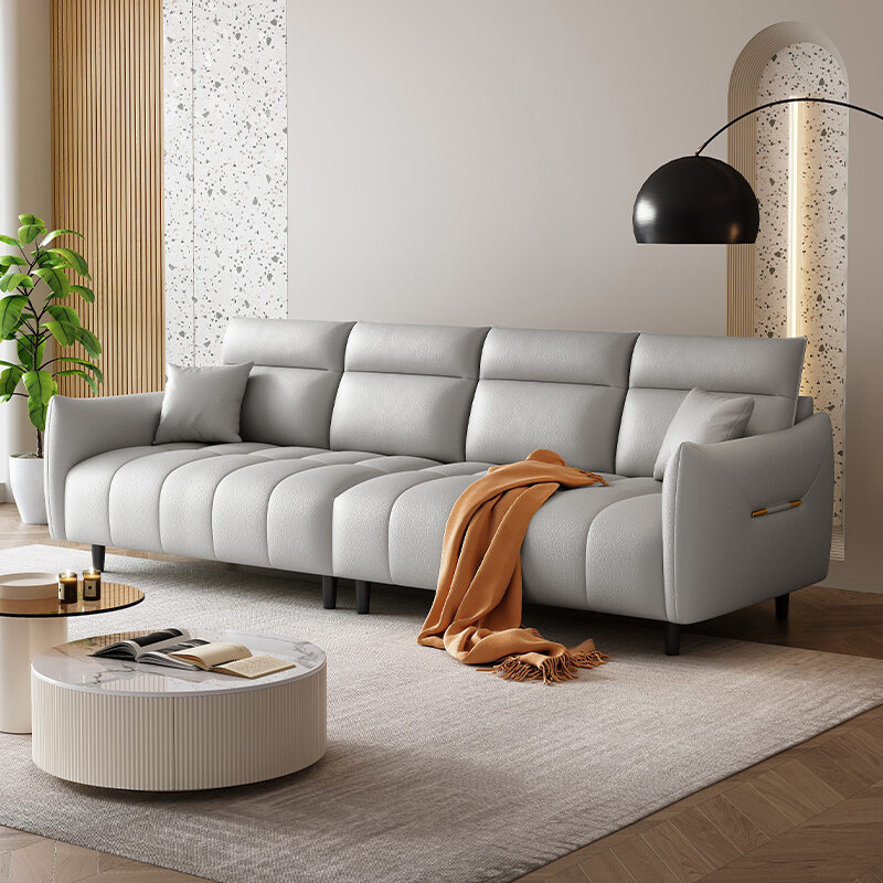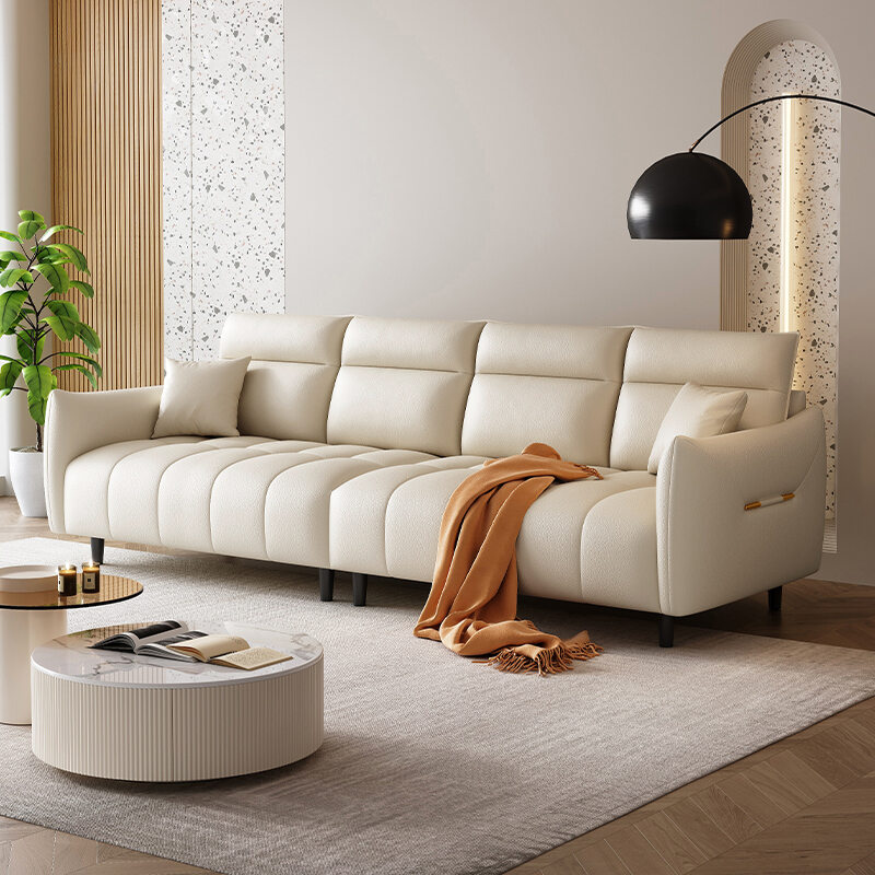 Italian Minimalist Style Small Apartment Living Room Cat Scratch Leather Art Living Room Sofa High Leg Three Four People Straight Row Modern Minimalist