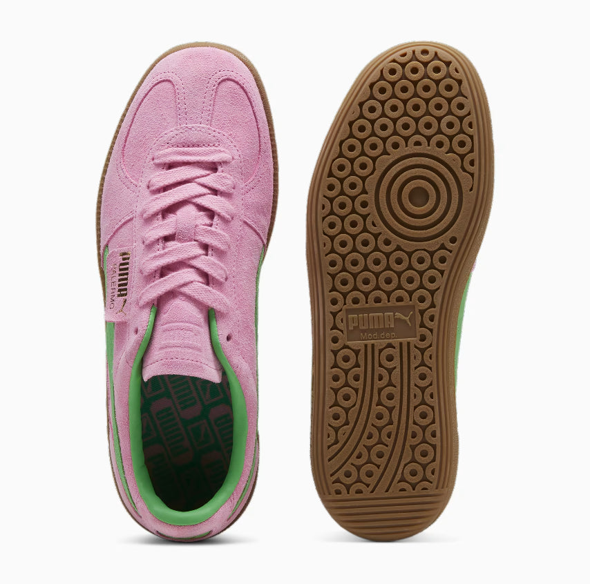 The Palermo, a terrace legend from the Puma archives, returns. The silhouette made its debut in the early 1980s, and it quickly became a favorite staple among terrace crowds in British football stadiums. The Palermo, like the original, has its signature tag at the upper, a T-toe construction, colorblocking details, and, of course, the classic gum sole.