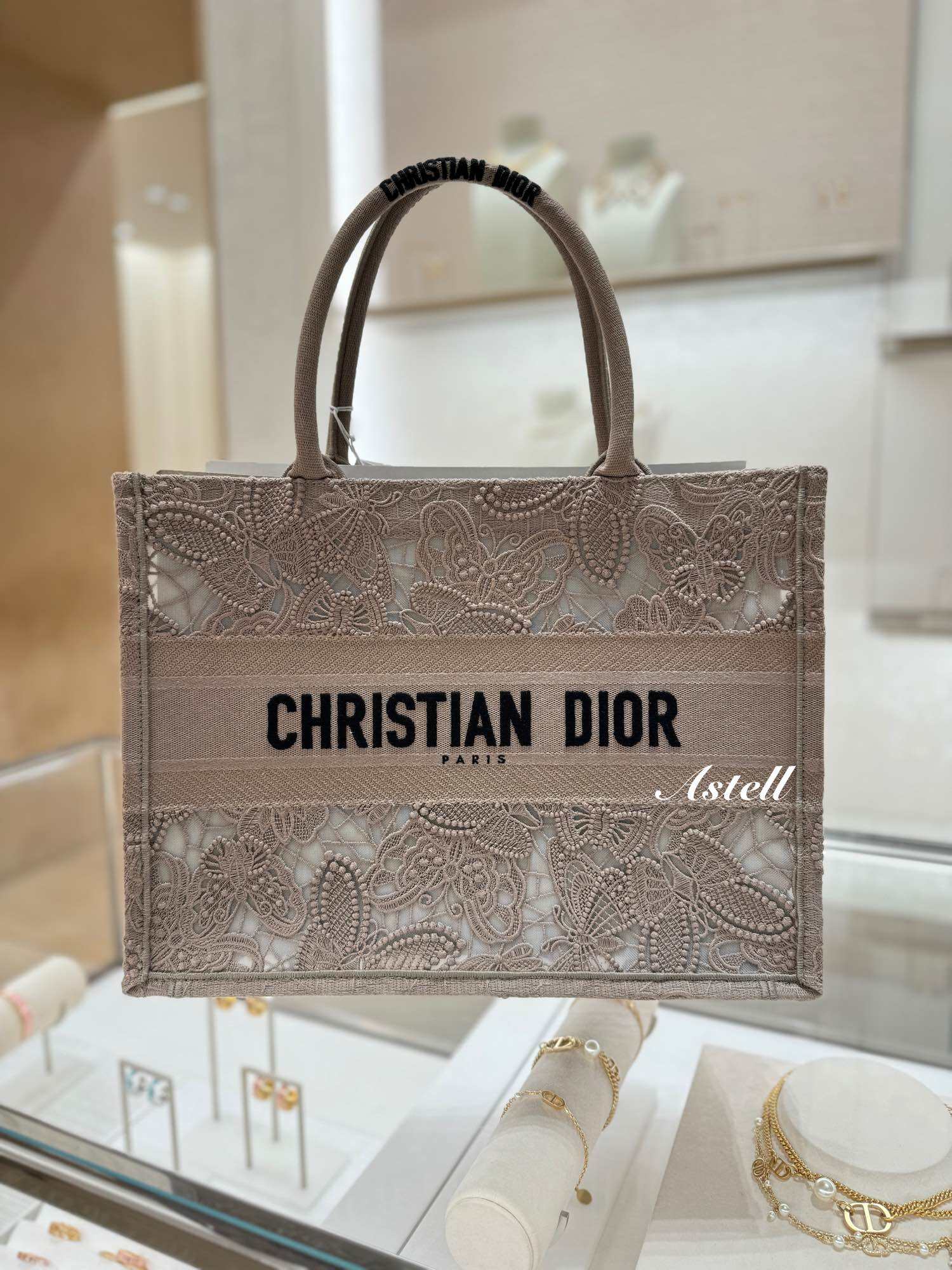 [PRE-ORDER] DIOR BOOK TOTE MEDIUM BEIGE D-LACE BUTTERFLY EMBOIDERY