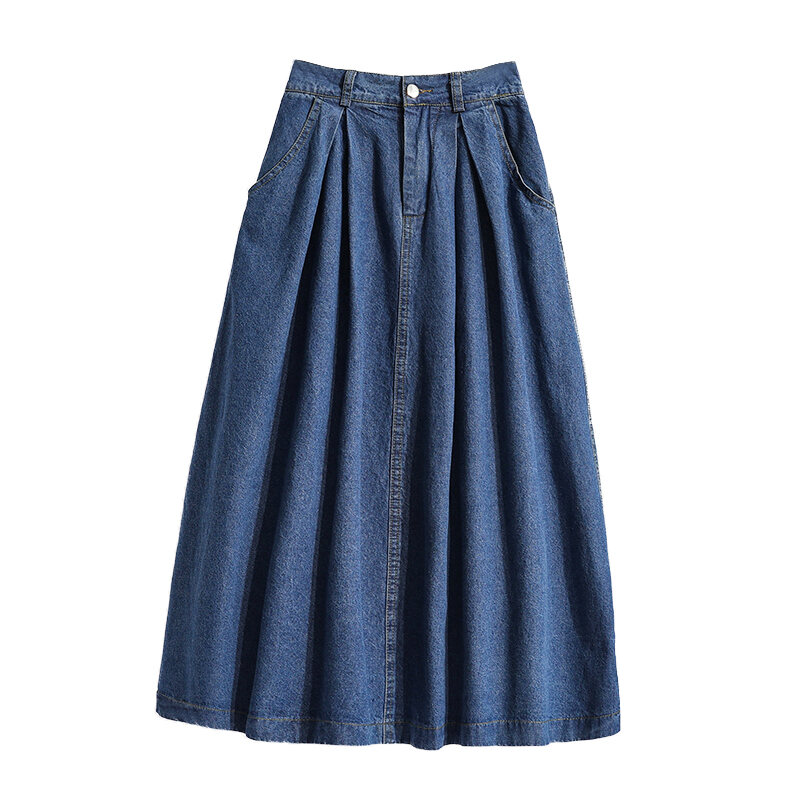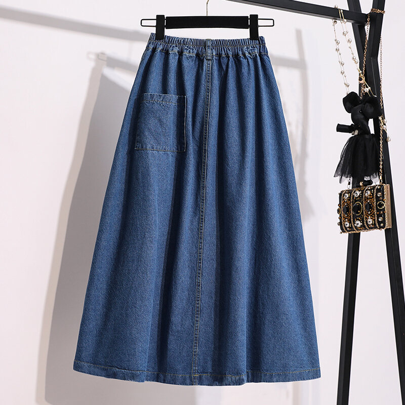 100.00kg Chubby Girl Summer K-style Women's Mid Length Long Length A- line Skirt Elastic Waist One Breasted Pocket plus Size Skirt