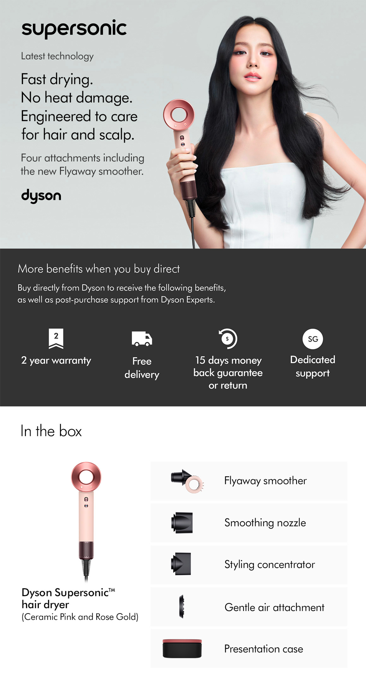 [Mother’s Day Gifting Edition] Dyson Supersonic ™ Hair Dryer HD15 (Ceramic Pink/Rose Gold) with Flyaway Smoother (NEW)