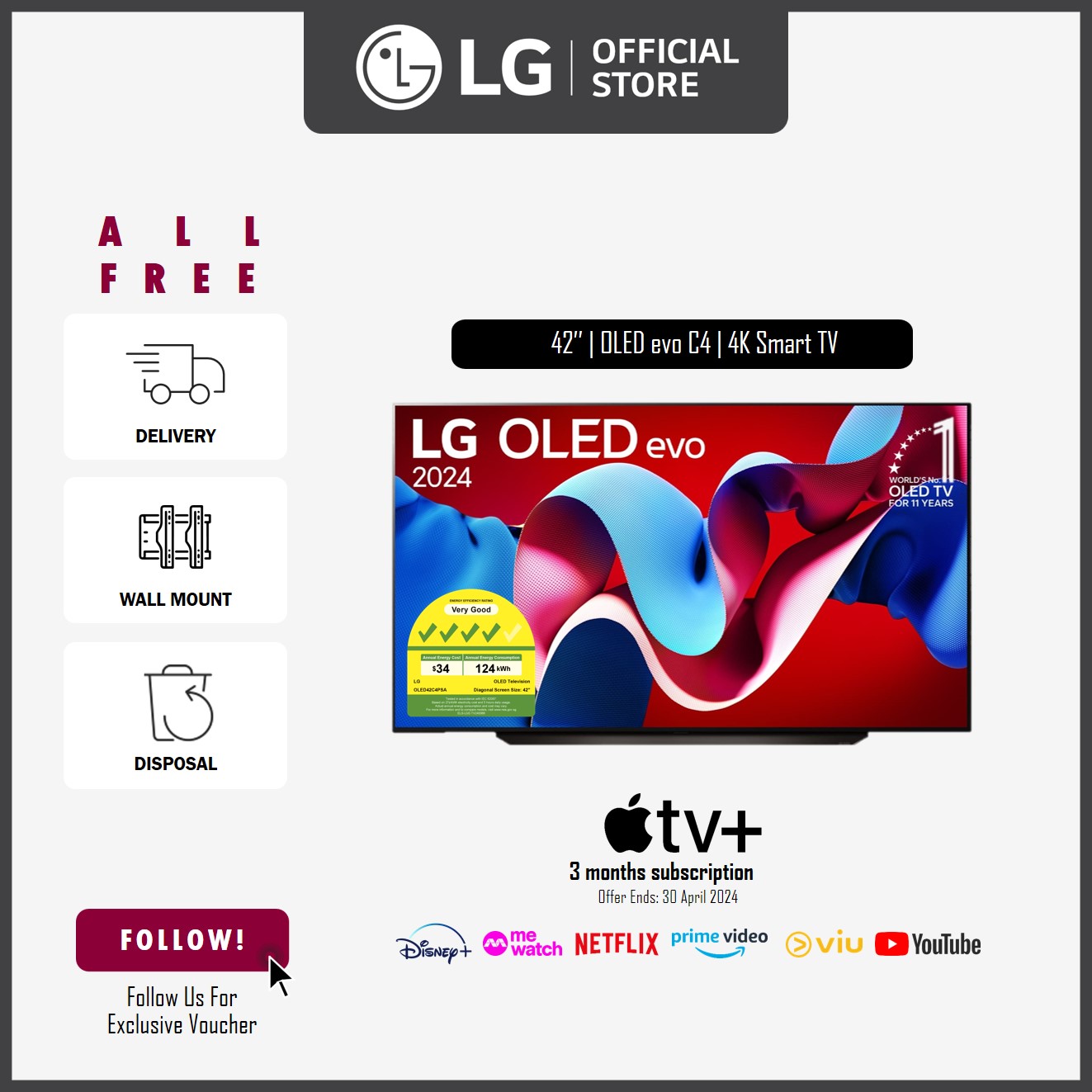 [NEW] LG OLED42C4PSA OLED 42'' evo C4 4K Smart TV Free Delivery + Free Wall-Mount Installation Worth up to $200
