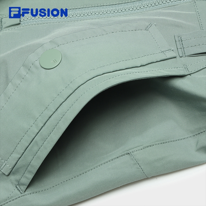 Brand: FILA FUSION Product: FILA FUSION INLINE URBAN TECH Women Woven Pants in Green SKU No. T11W421804FGN Color: Green Gender: Women Lightweight, breathable trousers for occasional activities, freedom of movement, Stretch fabric and preformed knees. Lightweight synthetic fabric that wicks the perspiration away from the body.