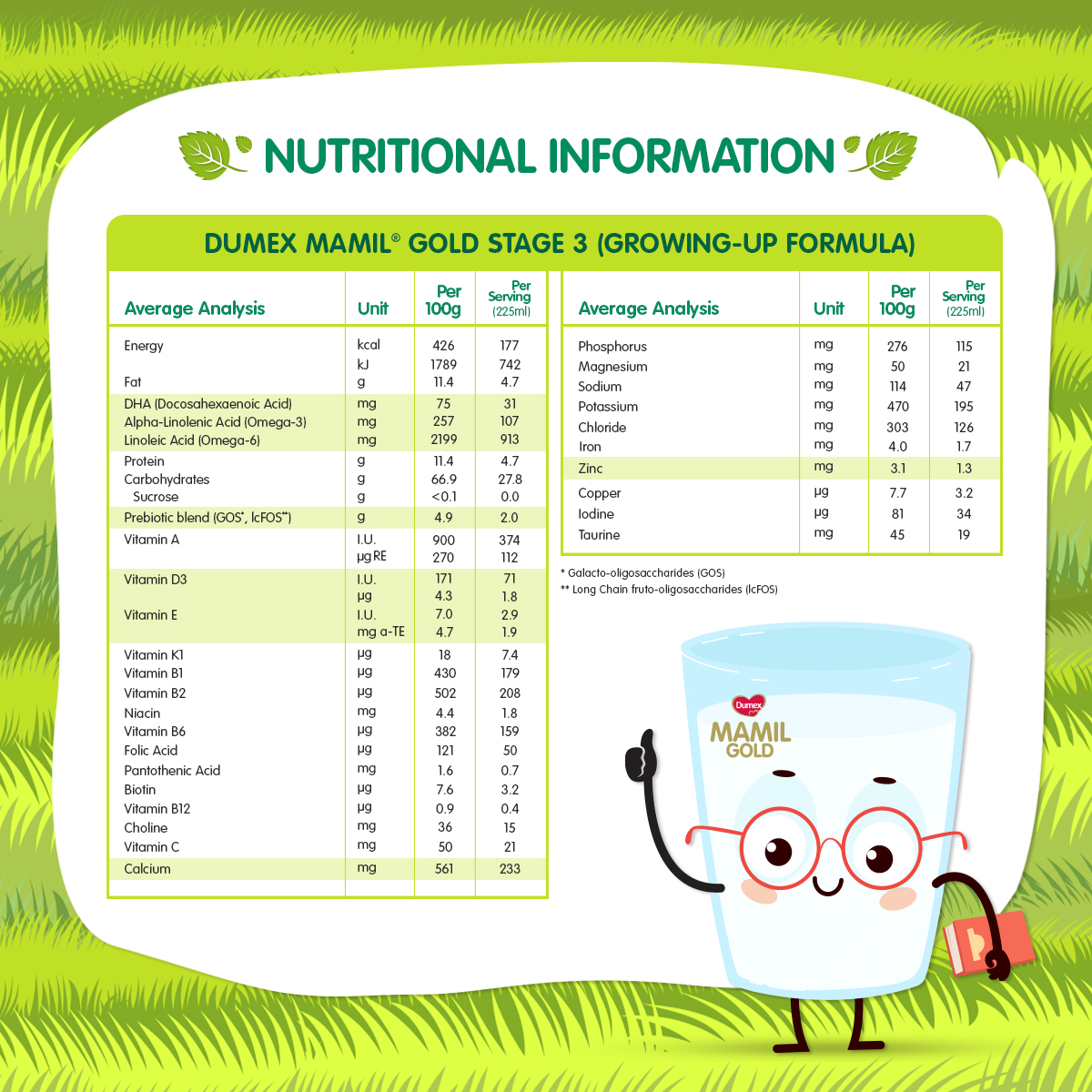 [BUY 1 (EXP JAN 2025) FREE 1 (EXP AUG 2024)] Dumex Mamil Gold Stage 3 Growing Up Milk Formula 1.6kg (1-3 years)