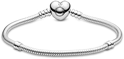 Give your collection a fresh romantic look with the Moments Silver Bracelet with Heart Clasp from Pandora. This stunning charm bracelet is crafted from polished sterling silver in the classic snake chain design featuring an exclusive love heart shaped clasp, with perfect branded engraving. Celebrate those moments which create your love story with this romantically inspired collection from Pandora. Sterling Silver: The world’s most popular silver alloy, our sterling silver consists of 92.5% silver and 7.5% other metals (such as copper). This blend is excellent for jewelry because it preserves the color, luster and the weight of silver while vastly improving the durability of your bracelets. Memories Are Forever: Important milestones and moments are here to stay. Perfect gift for your wife, mother, daughter, granddaughter, niece, or any charm bracelet beginner. Mark your loved one's big day (wedding, sweet 16, new baby, Mother's Day, etc.) with the gift of expressing their individuality through their fashion and style. Tell Your Story With Charms: All women have their own individual stories to tell, a personal collection of special moments that makes them who they are. We celebrate these memories that bring us together and make us who we are. Manufactured Responsibily: At Pandora, we believe that responsible business practice and our aspiration to offer high quality jewelry go hand in hand. We're committed to developing and manufacturing responsibly, for our teams, and to minimize our environmental impact on the planet. #82,934 in Clothing, Shoes & Jewelry ( ) #15 in