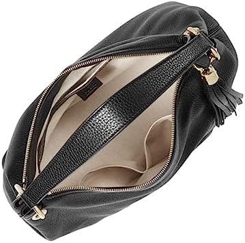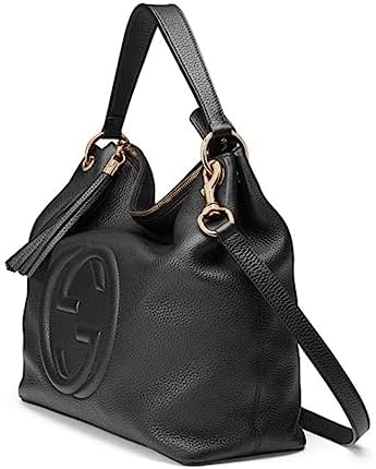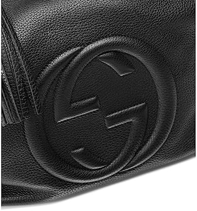This black Gucci bag exudes luxury with its beautiful leather and gold-toned hardware. The famous interlocking GG logo is displayed proudly on the front. With a zipper pocket and two open pockets befitting of a phone, you'll have space to organize what you need to bring with you. Model: 536194 Black Leather Gold-tone Hardware GG Soho Top Zip Closure Leather Shoulder Strap Removable/Adjustable Shoulder Strap Three Interior pockets Strap Drop: 5" Measurements: 13.5" x 5.5" x 13" (LWH) Includes authenticity cards and Gucci dust bag Made in Italy #4,261,511 in Clothing, Shoes & Jewelry ( ) #5,633 in