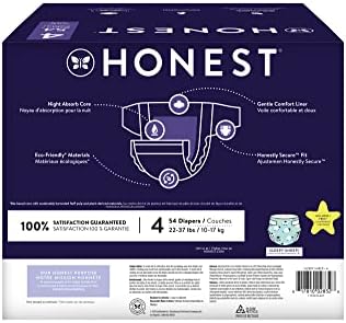 Night Absorb Core: Super absorbent material to help keep your baby’s diaper dry all night with up to 12 hours of advanced protection. The absorbent material features plant-based materials that won’t irritate your baby’s skin Gentle Comfort Liner: Ultra soft-touch liner made without fragrances to be gentle on baby's sensitive skin and protect against diaper rash Honestly Secure Fit: Soft, stretchy side panels, comfy elastic waistband, sure-fit leg cuffs and fastening tabs - sweet dreams Eco-Friendly Materials: Plant-based core with sustainably harvested fluff pulp and plant-derived materials Made with hypoallergenic materials for the utmost in comfort; Plant-based inner and outer layers are gentle on baby's skin; Super sweet sheep print; Stretchy tabs for a perfect fit #253 in Baby ( ) #18 in